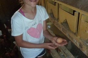 Die Kinder sind begeistert wenn sie täglich die Hühnereier aus dem Nest holen können und versorgen auch gerne die Kleintiere wie, Hasen, Meerschweinchen,Katzen und unsere Hofhunde Kira und Klein-Soe.