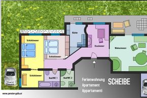 Grundriss Ferienwohnung Scheibe, Details unter www.pension-gulla.at