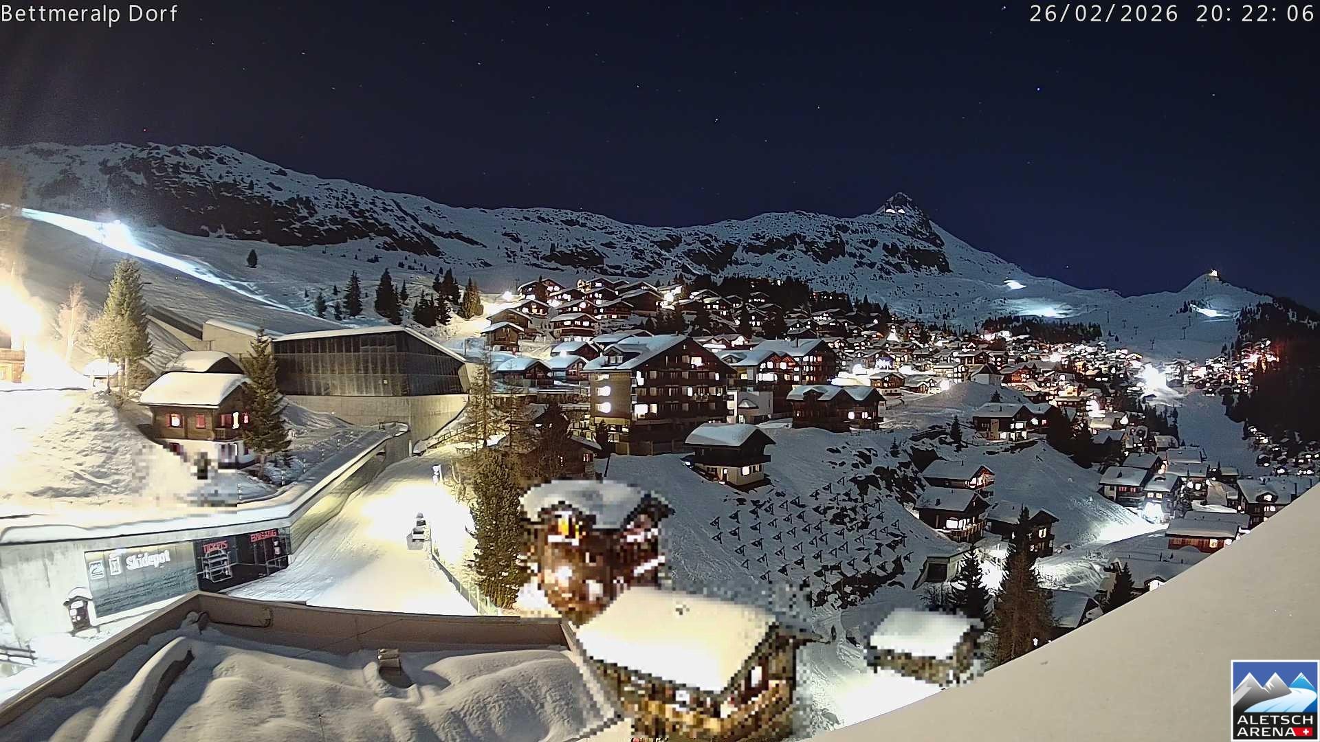 Archiviertes Webcam Bild: Aletsch Arena: Bettmeralp Dorf am 26 Feb 2026 um 20:59 Uhr Aktuell