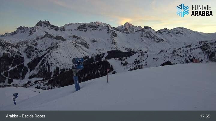 Die Webcam befindet sich an der Bergstation der Sesselbahn Arabba-Monte Burz im Skigebiet Arabba. Sie zeigt das Bergrestaurant Rifugio Burz und blickt hinüber zu den Pisten am Le Pale Sessellift.