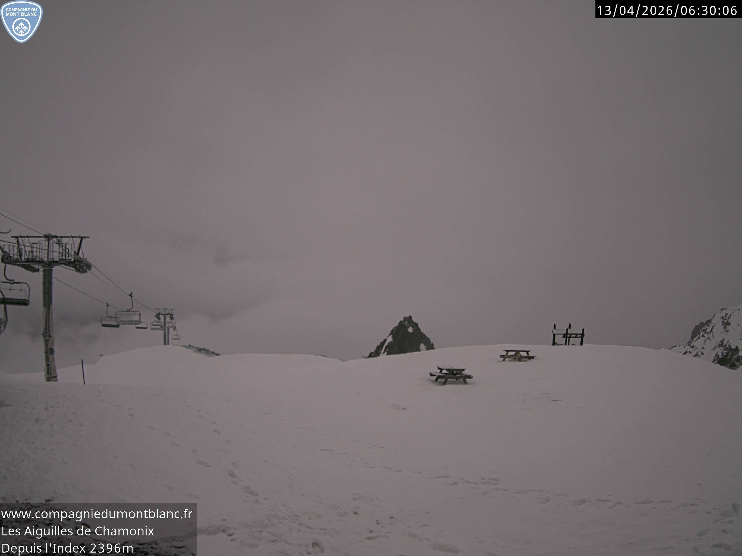 Archiviertes Webcam Bild: Sessellift Index bei Flégère am 13.04.2026 um 04:07 Uhr 04:00
