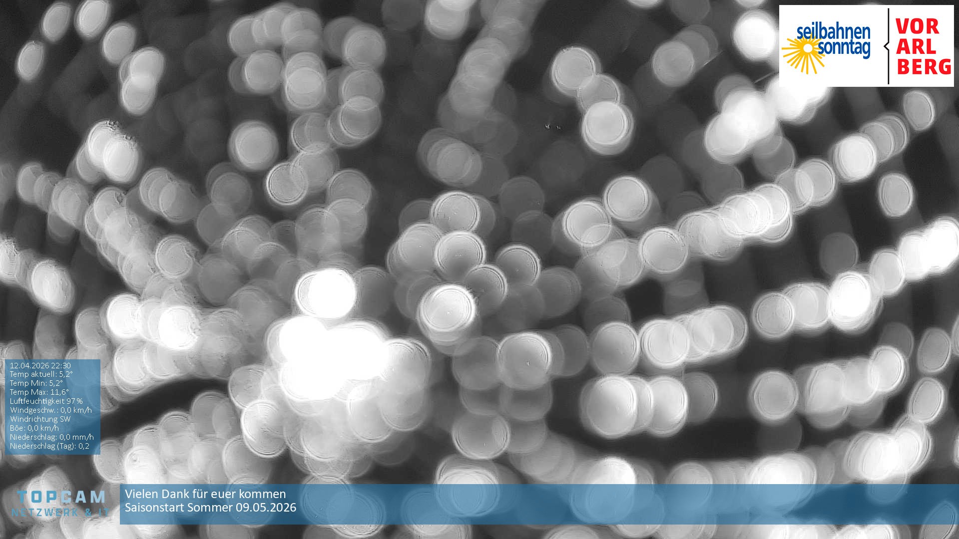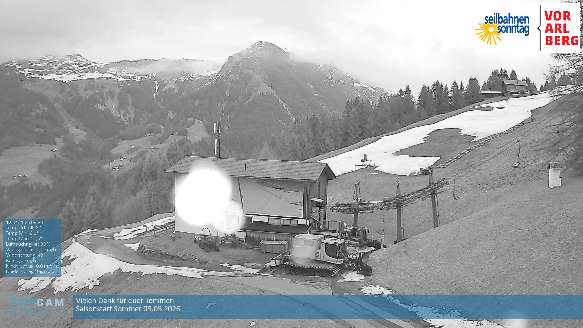 Archiviertes Webcam Bild: Seilbahnen Sonntag: Bergstation Pendelbahn am 12.04.2026 um 00:53 Uhr 00:00