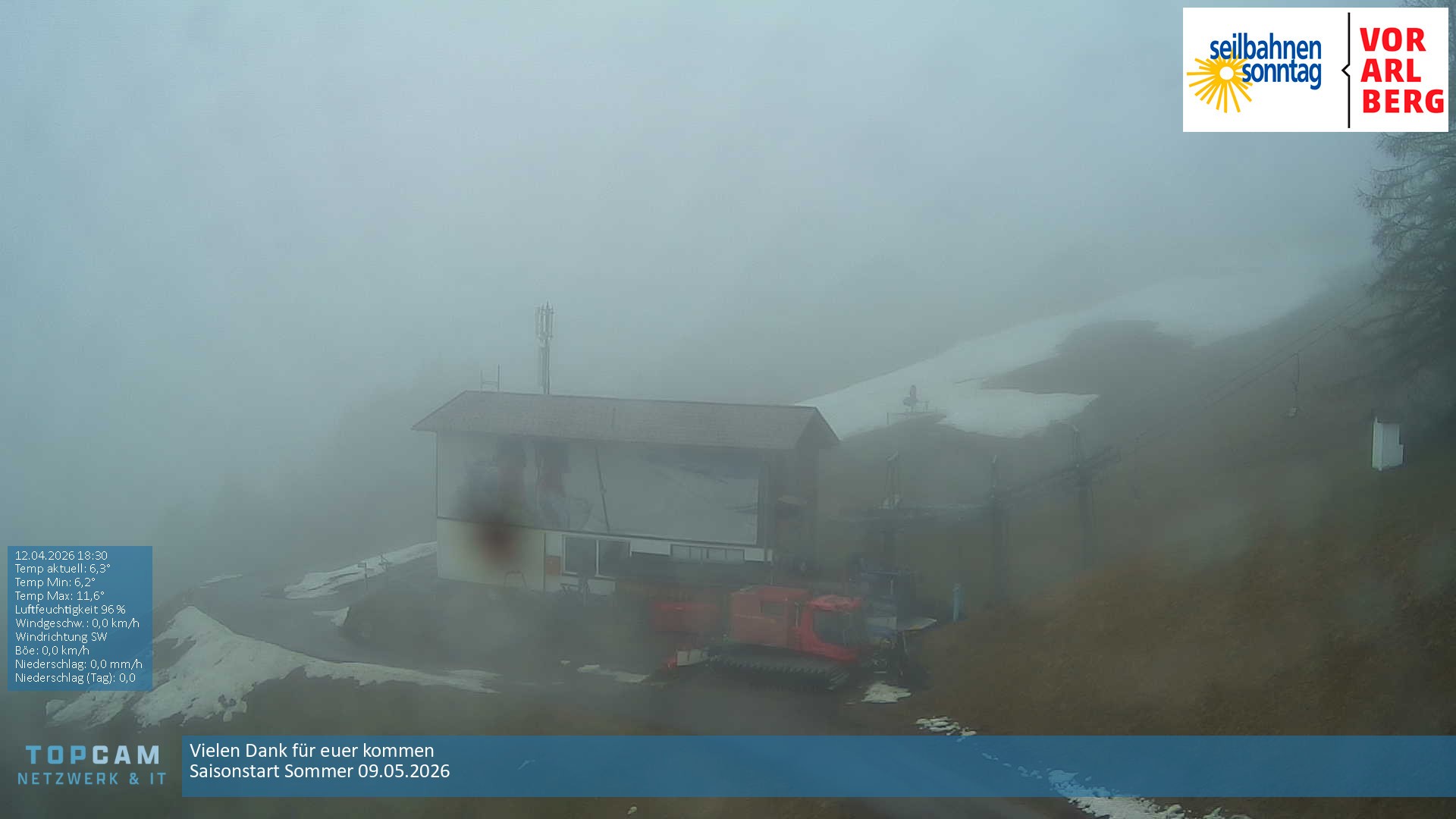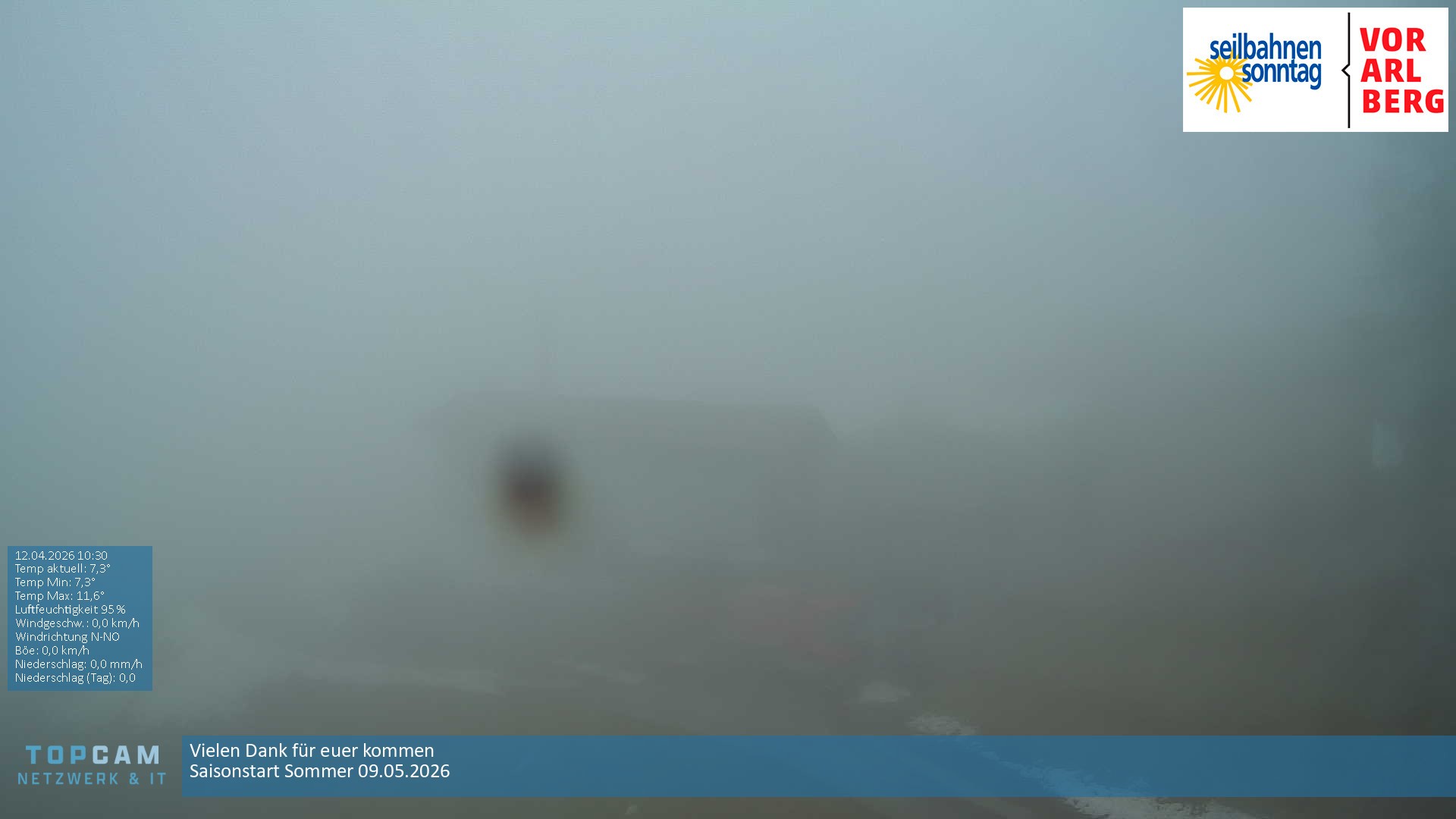 Archiviertes Webcam Bild: Seilbahnen Sonntag: Bergstation Pendelbahn am 12.04.2026 um 12:53 Uhr 12:00