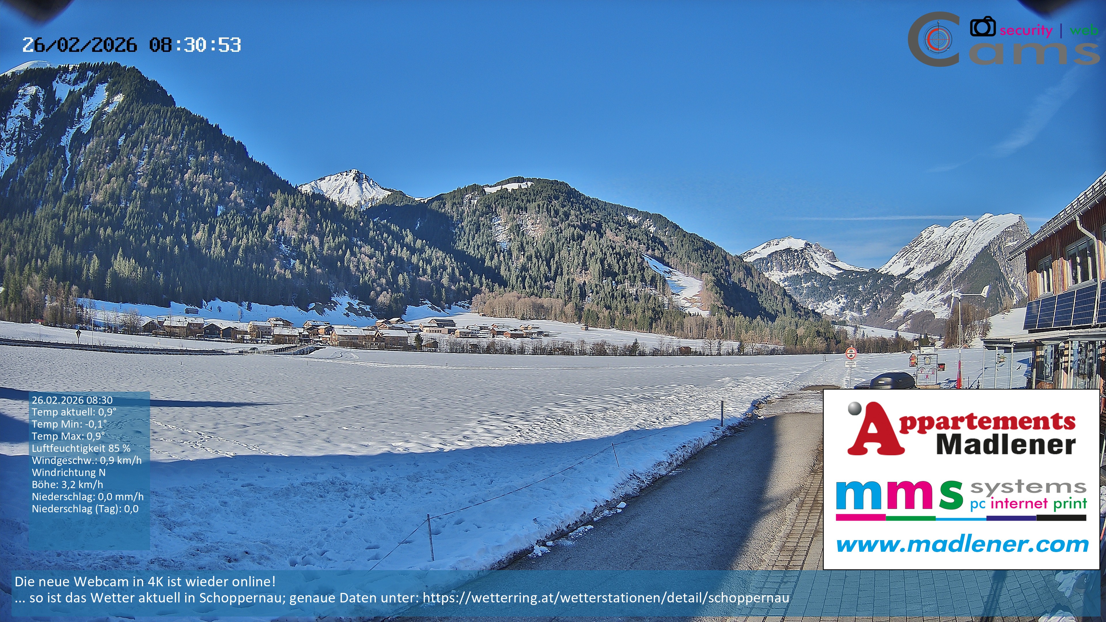 Archiviertes Webcam Bild: Schoppernau Unterdorf am 26 Feb 2026 um 08:09 Uhr 07:00