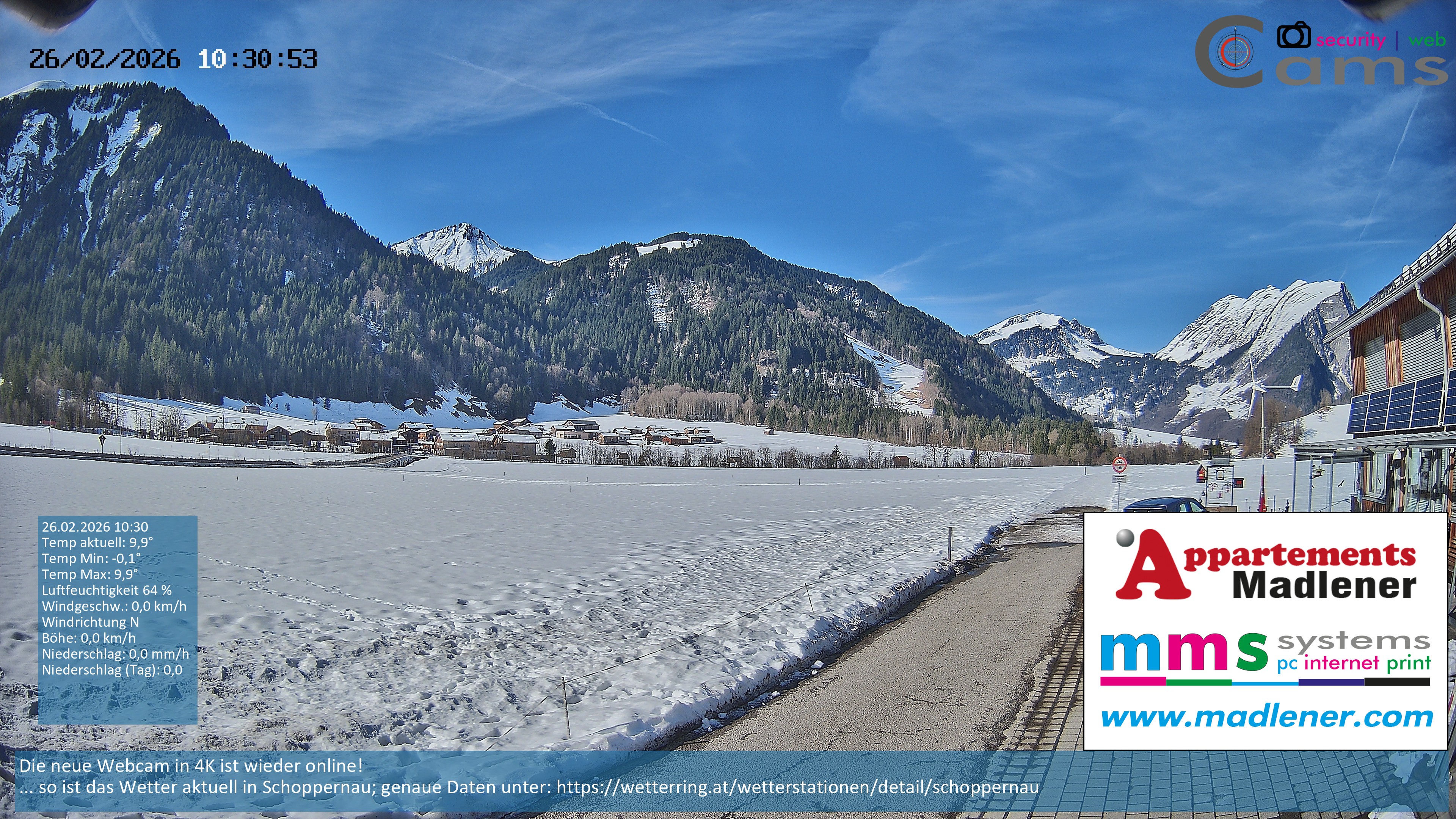 Archiviertes Webcam Bild: Schoppernau Unterdorf am 26 Feb 2026 um 10:09 Uhr 09:00