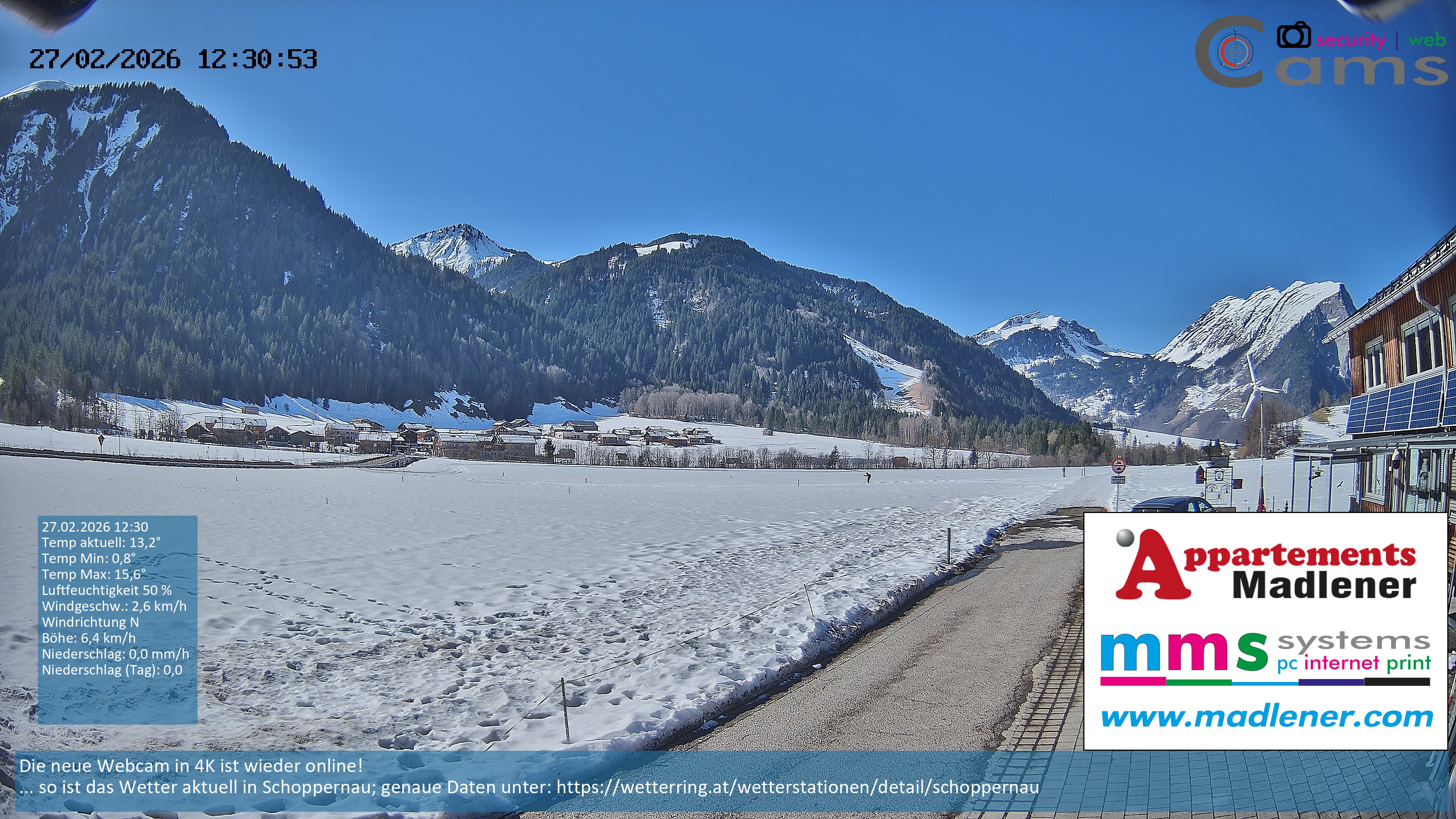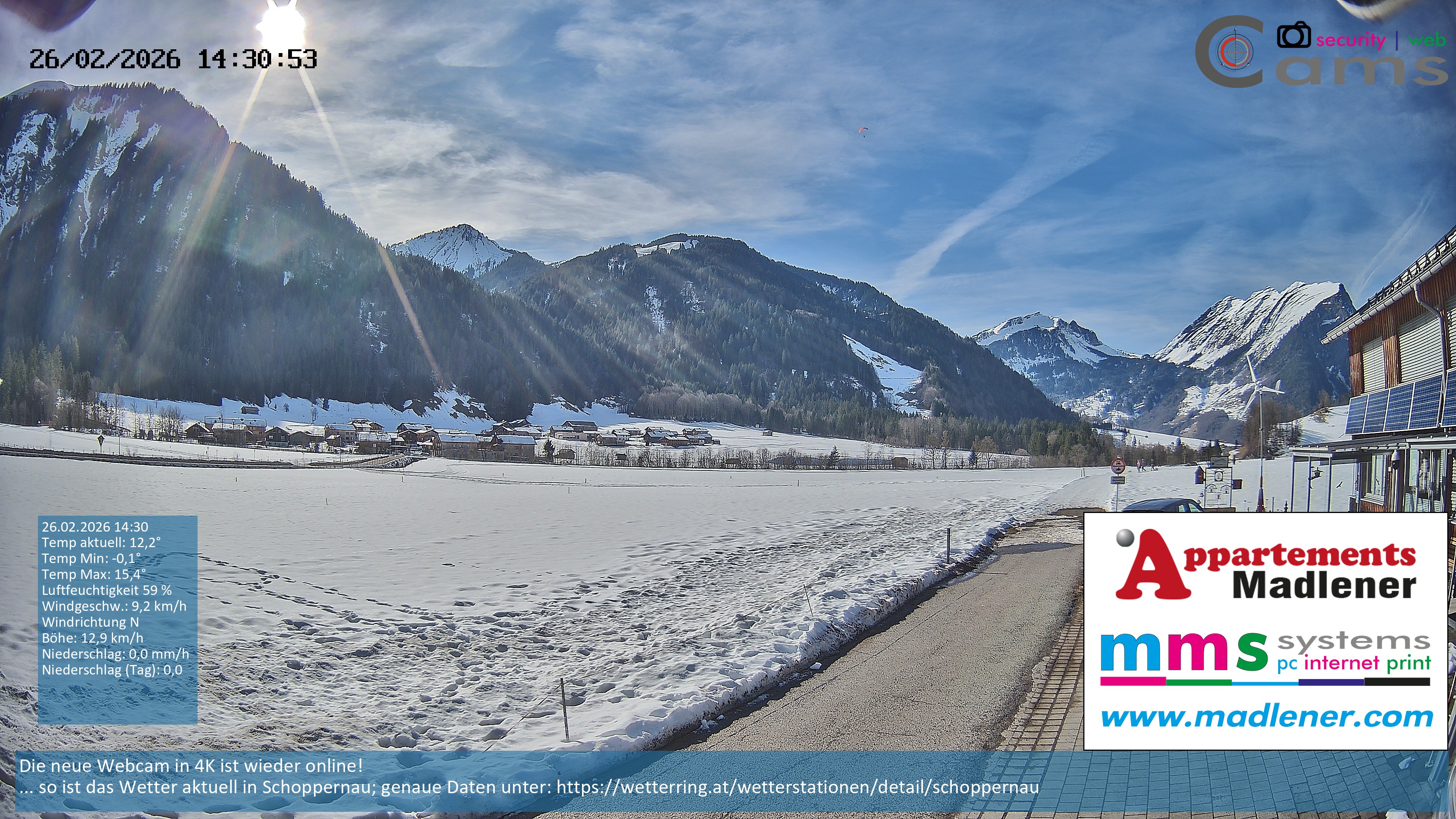 Archiviertes Webcam Bild: Schoppernau Unterdorf am 26 Feb 2026 um 16:09 Uhr 15:00