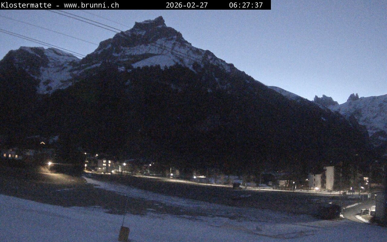 Archived webcam image showing Base station of the Brunni cable car on 26 Feb 2026 at 02:12 01:00