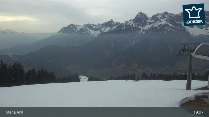 Archiviertes Webcam Bild: Hochkönig Maria Alm: Bergstation Hochmaisalm am 12.04.2026 um 19:45 Uhr 19:00