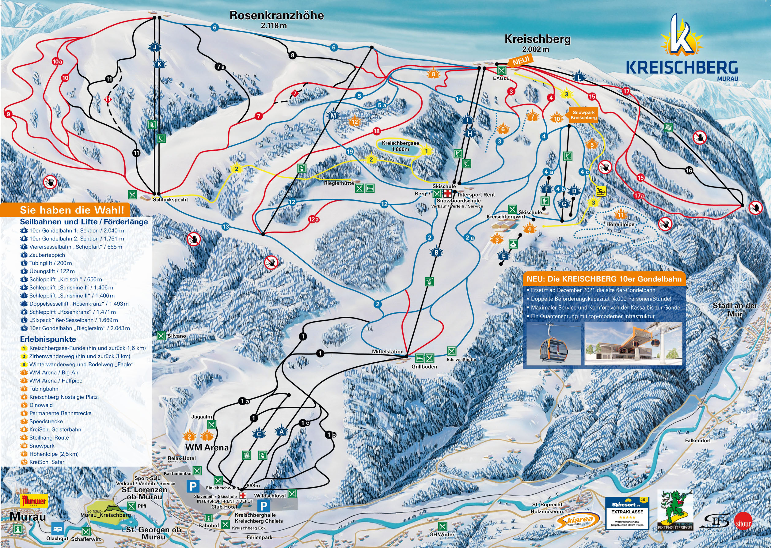 Langlaufgebiet Murau - Kreischberg in der Urlaubsregion Murtal: Position auf der Karte