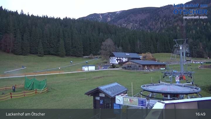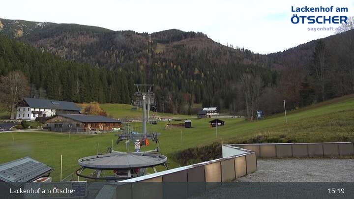 Blick von der Talstation der 4er Sesselbahn Eibenkogl im Skigebiet Lackenhof am Ötscher in Niederösterreich.