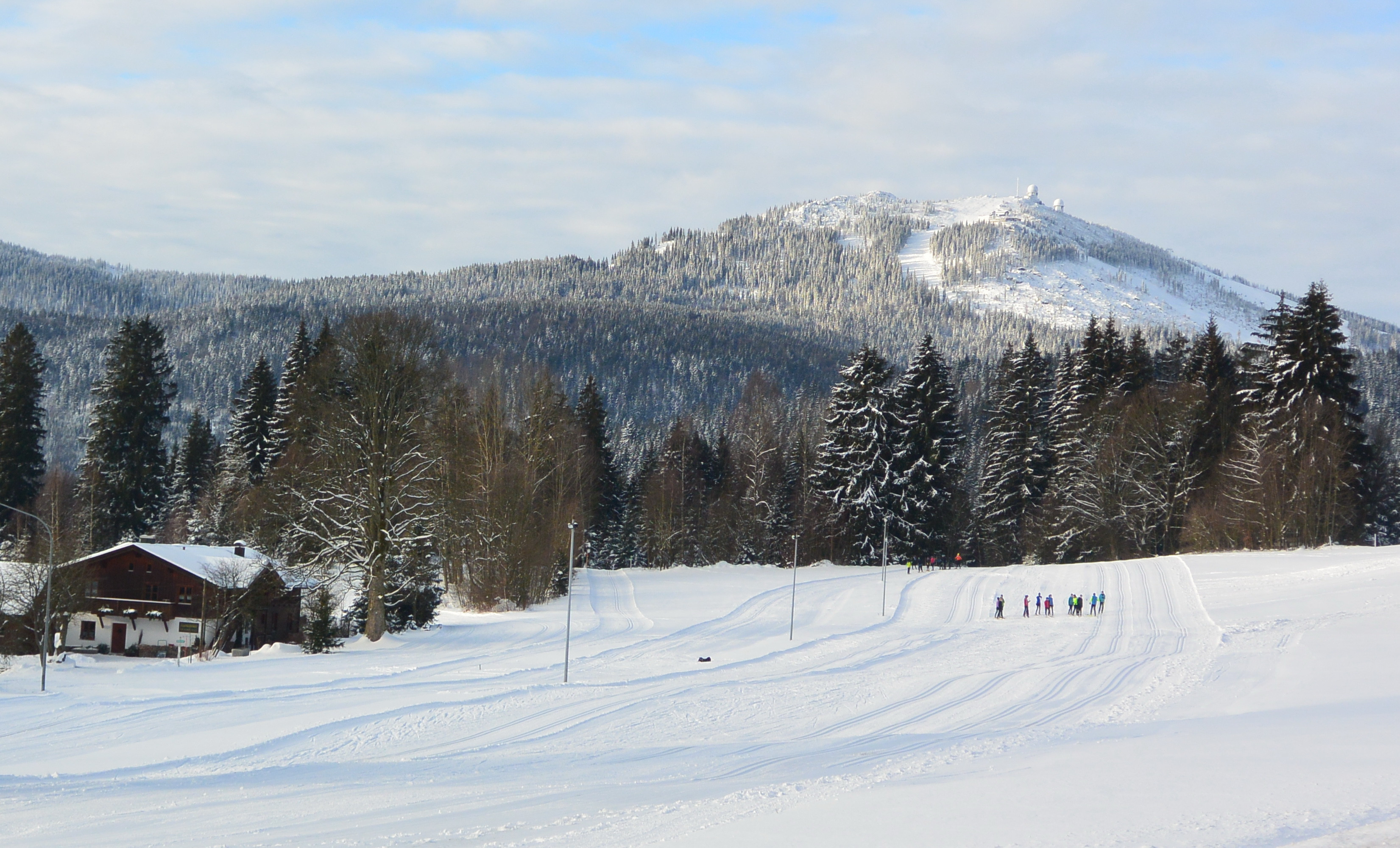 Ein besonderes Highlight des Langlaufzentrums ist die Hohenzollernloipe, die rund um Bayerisch Eisenstein fantastische Ausblicke auf den Ort und den Großen Arber bietet.