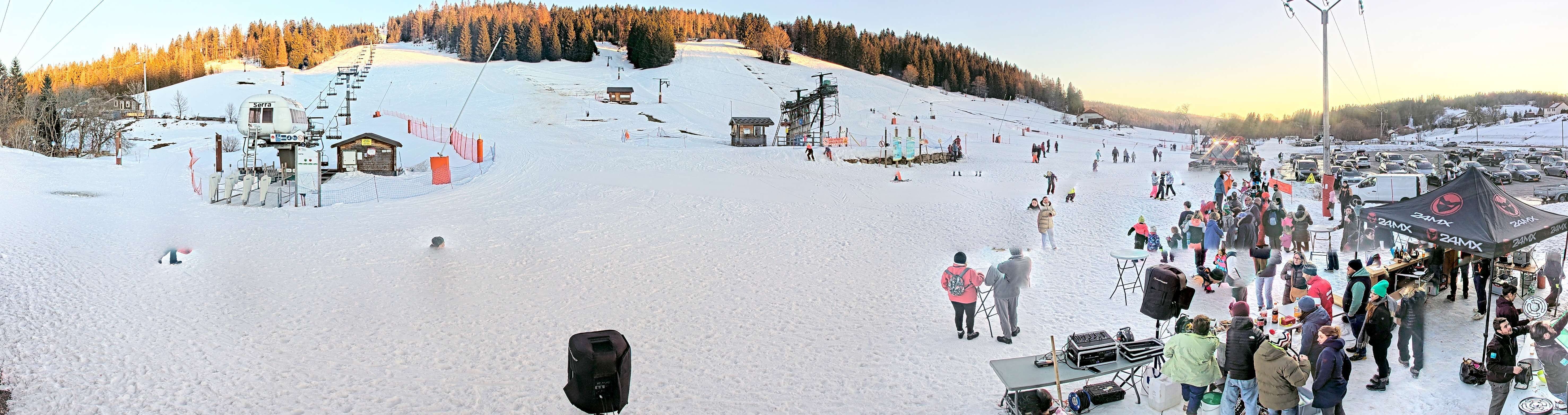 Zu sehen ist die Talstation der Lifte am Massif de la Serra im französischen Jura, Franche-Comté.