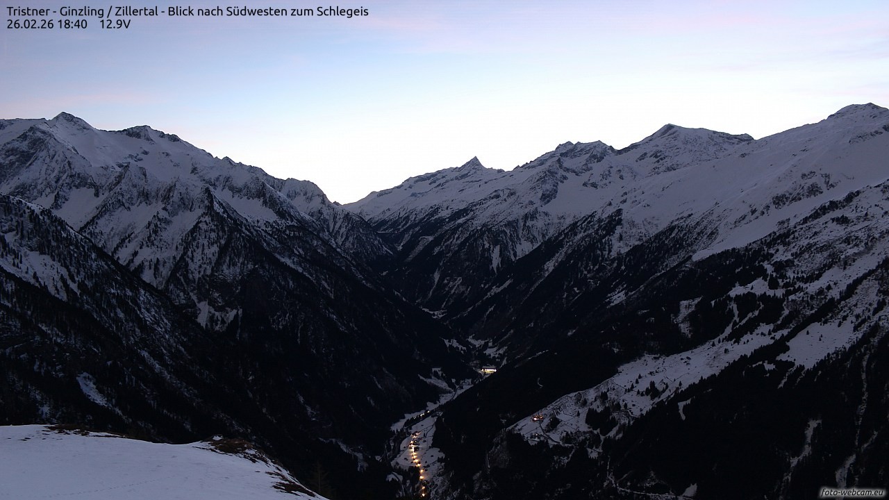 Archiviertes Webcam Bild: Gamshütte Zillertal Blick zum Tristner am 26 Feb 2026 um 06:24 Uhr 05:00