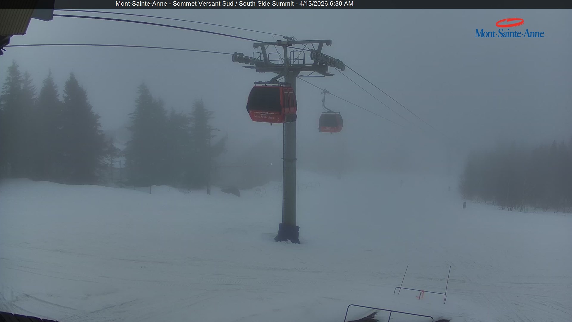 Diese Webcam zeigt den Blick vom Gipfel des Mont Sainte Anne nahe der kanadischen Großstadt Quebec Richtung Süden. Der Gipfel befindet sich ca. 800 Meter ü. NN. Das Skigebiet Mont Sainte Anne zählt mit seinen 31 Abfahrten zu den größeren Skigebieten in Kanada.