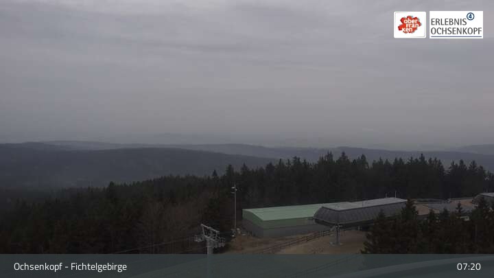 Archiviertes Webcam Bild: Ochsenkopf: Panoramablick vom Sendeturm am 13.04.2026 um 07:58 Uhr 07:00