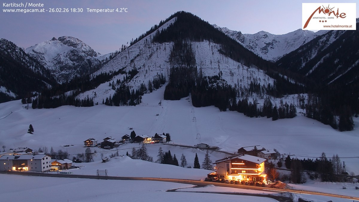 Archived webcam image showing Kartitsch - View Hotel Monte on 26 Feb 2026 at 02:12 01:00