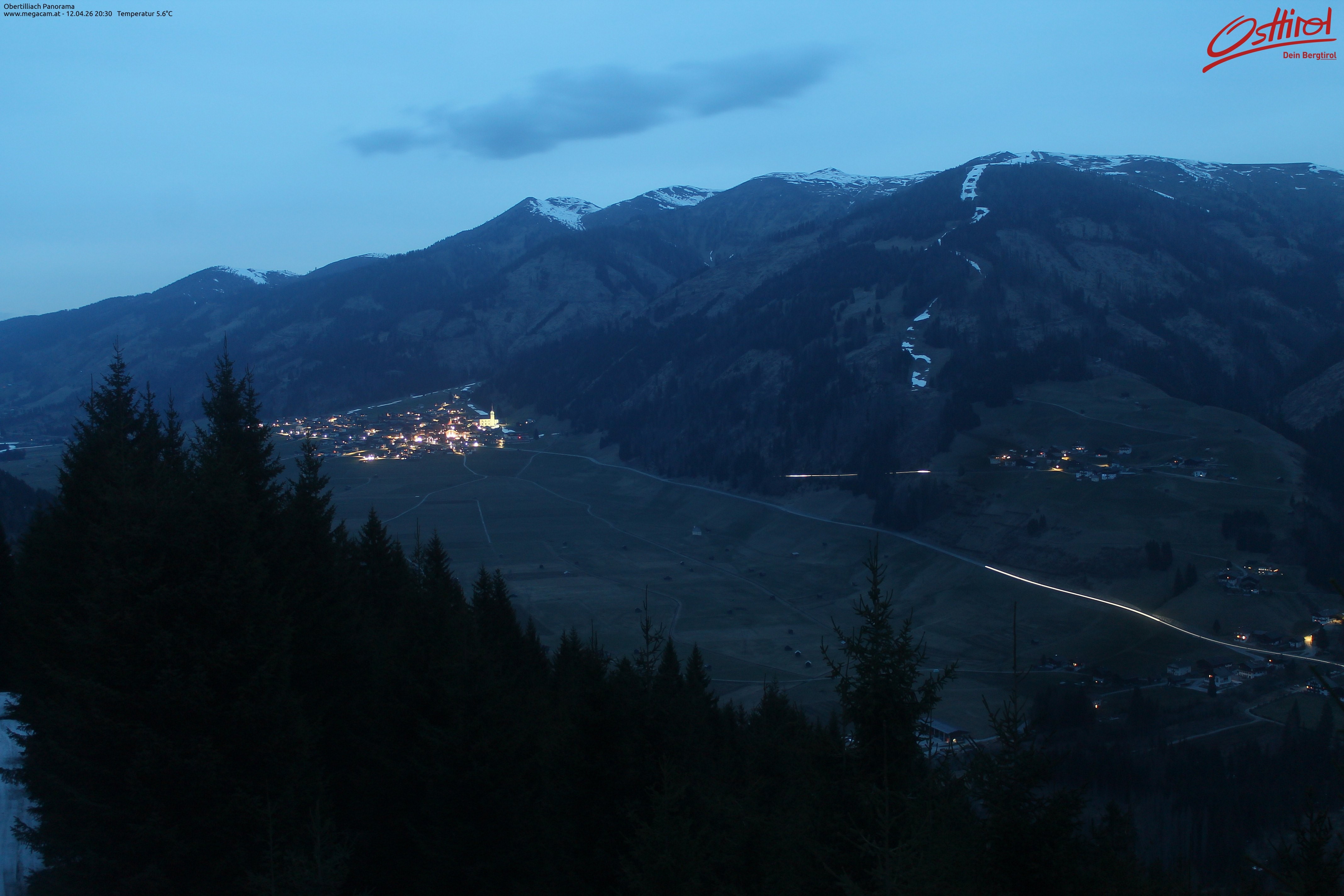 Archiviertes Webcam Bild: Obertilliach Panorama am 12.04.2026 um 20:21 Uhr Aktuell