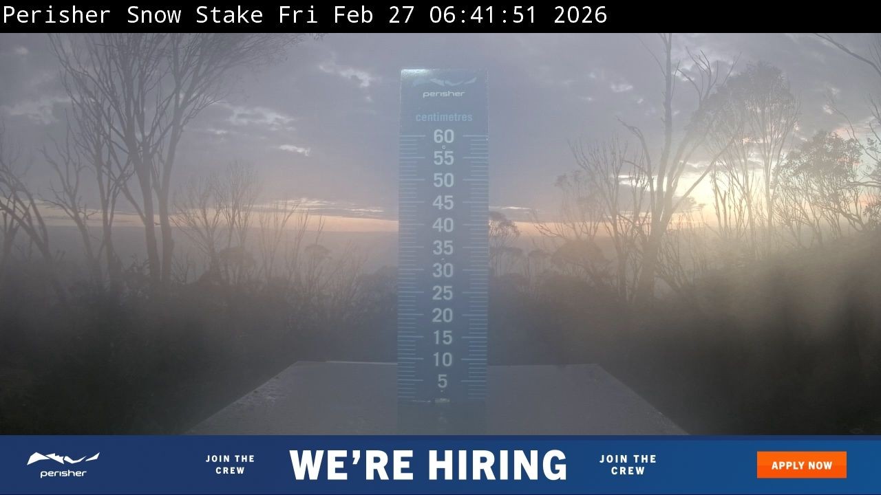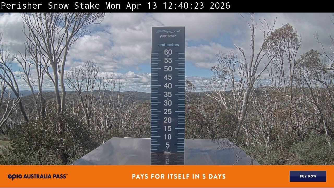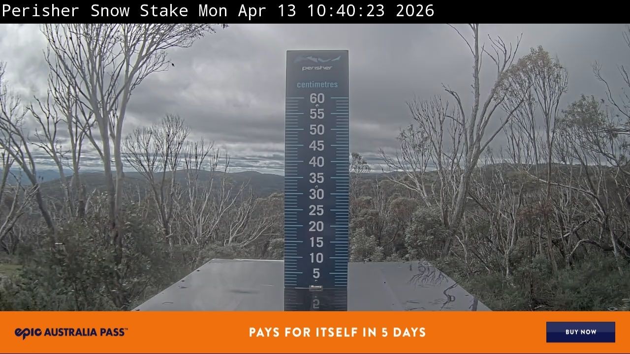 Im Bild siehst du den Snow Stake im australischen Skigebiet Perisher. Er zeigt der den aktuellen Neuschnee an. Alle 24 Stunden wird die kleine Plattform abgekehrt.