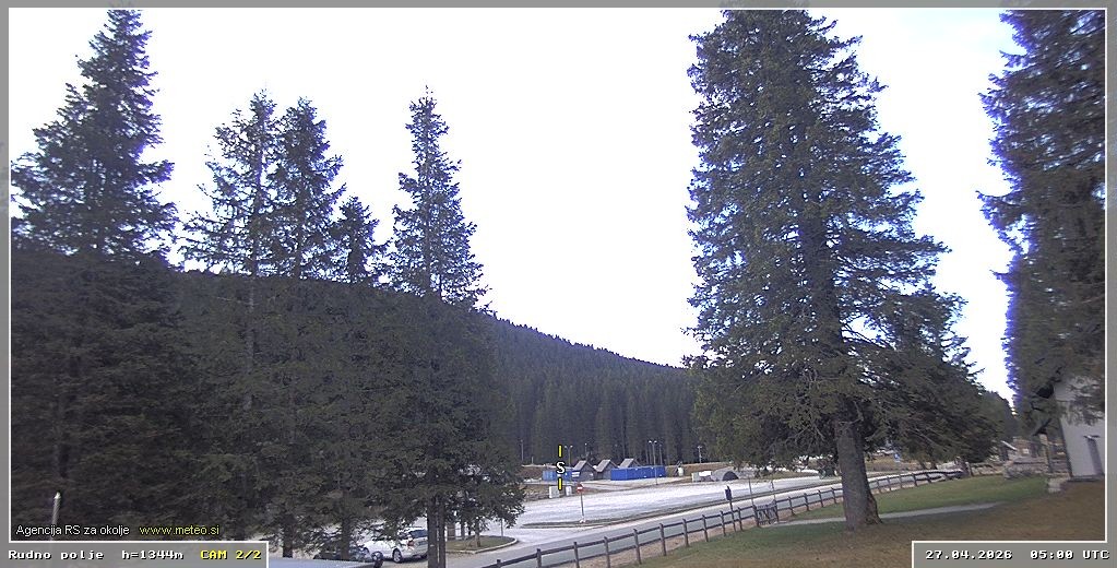 Archiviertes Webcam Bild: Pokljuka: Wetterstation am Biathlonstadion am 27.04.2026 um 07:23 Uhr 07:00