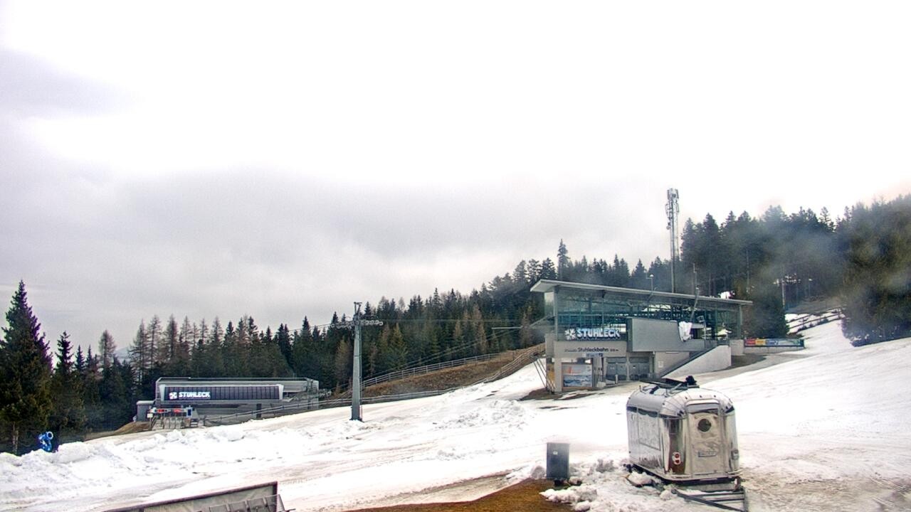 Archiviertes Webcam Bild: Stuhleck: Bergstation Stuhleckbahn am 12.04.2026 um 12:59 Uhr 12:00