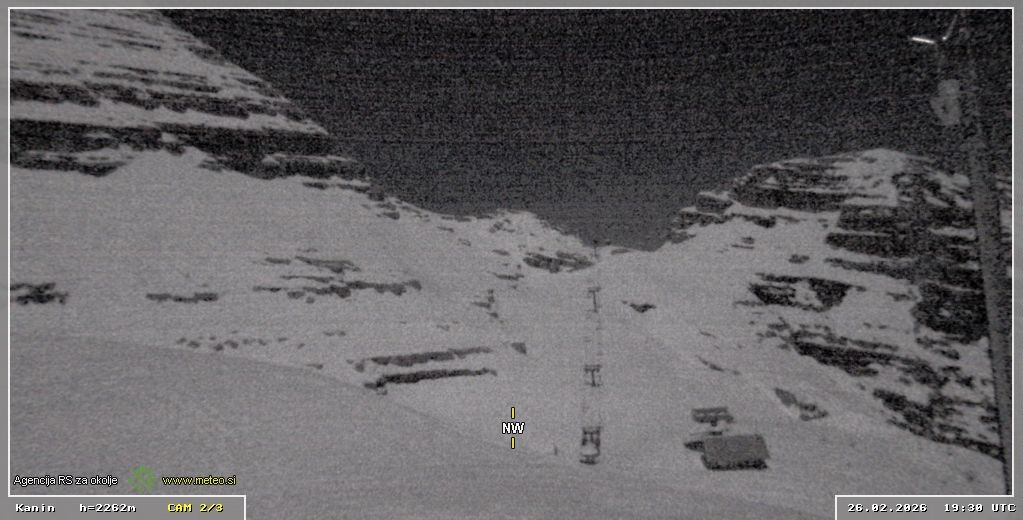 Archiviertes Webcam Bild: Skigebiet Sella Nevea - Bovec Kanin - Blick Richtung Nordwesten am 26 Feb 2026 um 04:29 Uhr 03:00