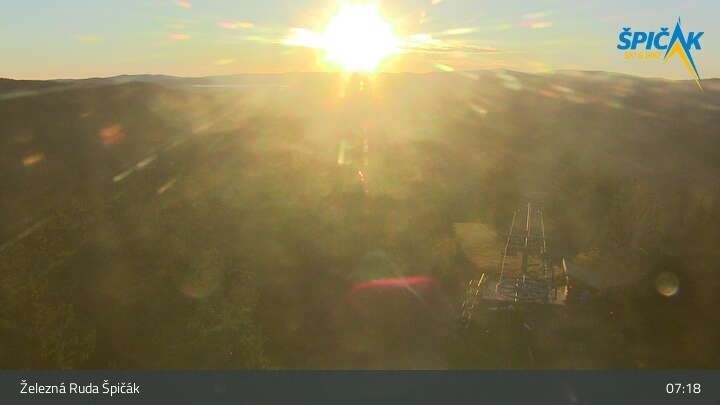 Blick auf die Bergstation des Sessellifts im tschechischen Skigebiet Špicák bei Železná Ruda.
