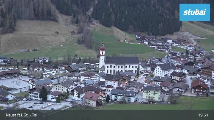 Archiviertes Webcam Bild: Neustift im Stubaital - Tal am 12.04.2026 um 19:26 Uhr 19:00