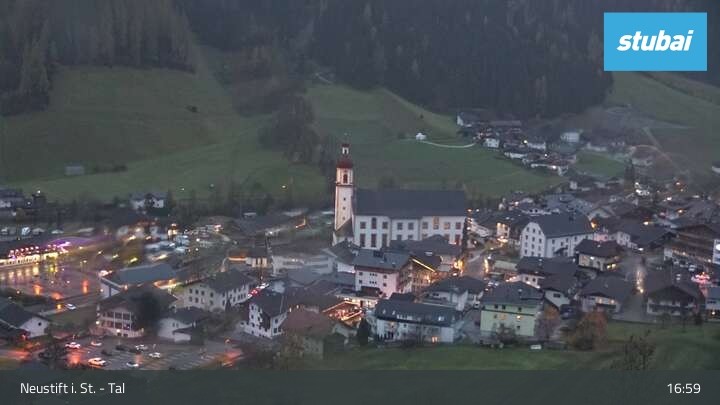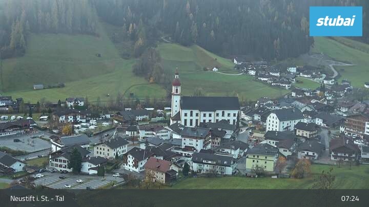 Blick über das Tal und den Ort Neustift im Stubaital.