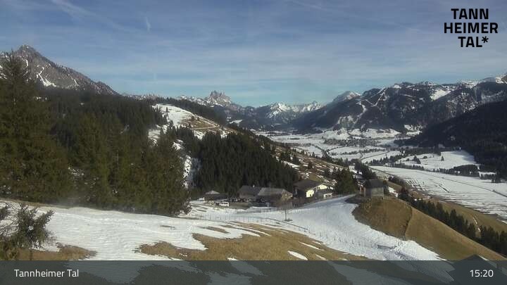 Die Webcam befindet sich an der Oberen Halde in Zöblen und blickt auf das umliegende Tannheimer Tal.