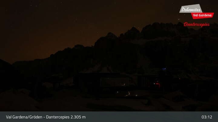 Archiviertes Webcam Bild: Val Gardena - Dantercepies Bergstation am 12.04.2026 um 03:26 Uhr 03:00