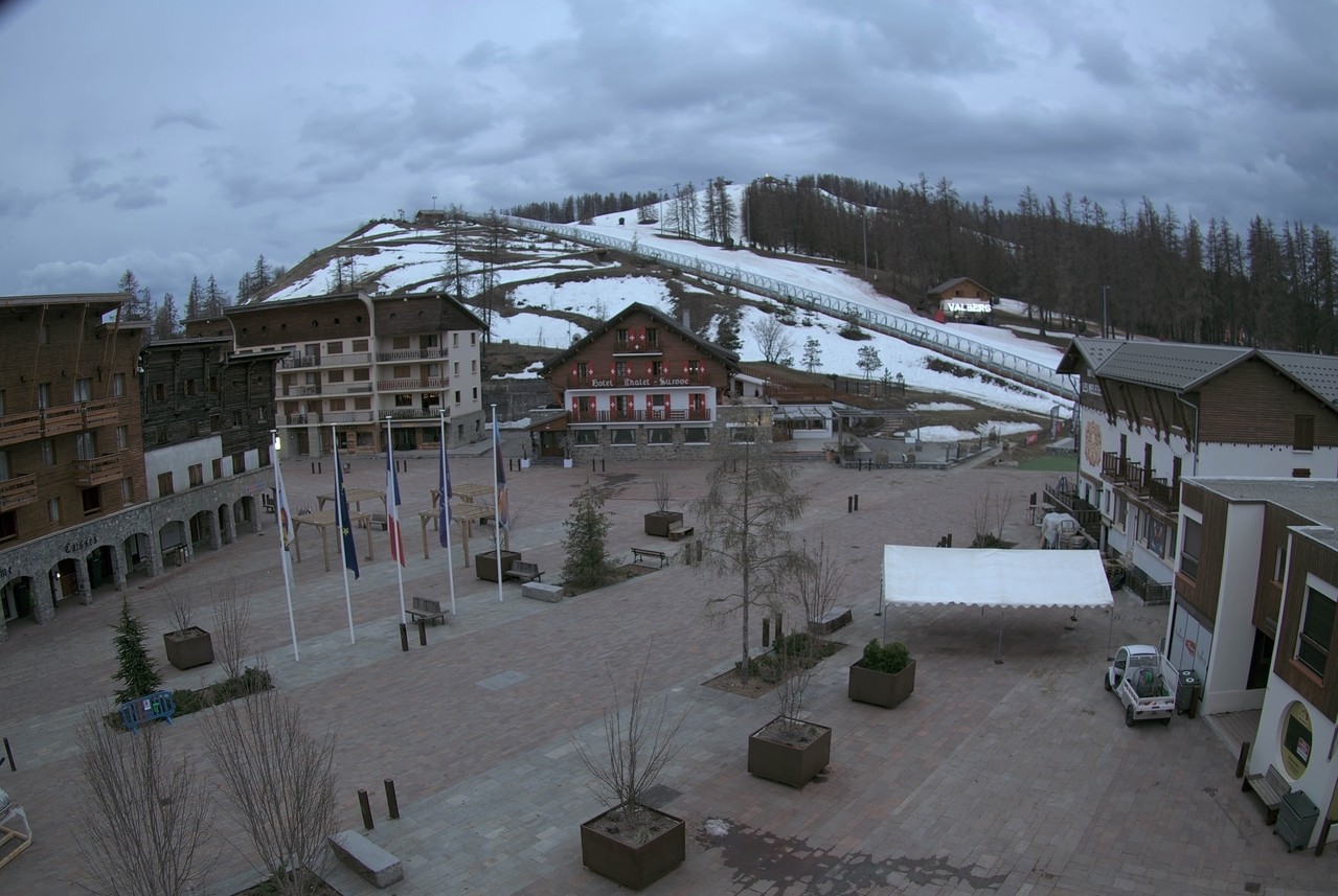 Diese Webcam zeigt das Dorfzentrum vom französischen Skiort Valberg im Département Alpes-Maritimes.