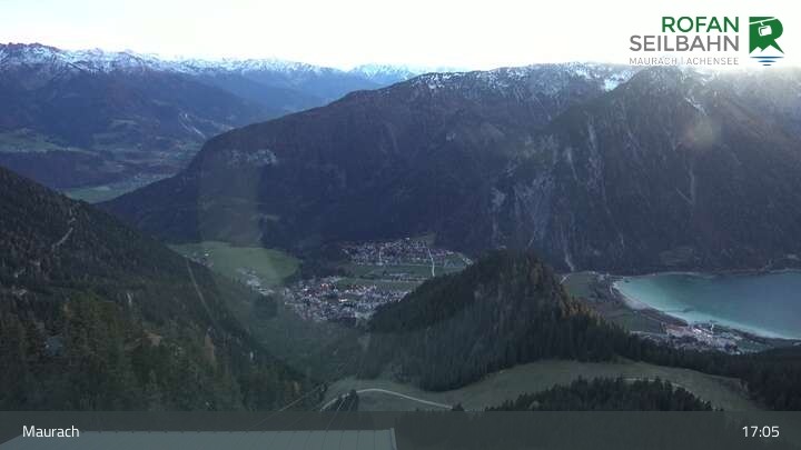 Blick von der Bergstation Rofan Seilbahn in Maurach in Tirol.