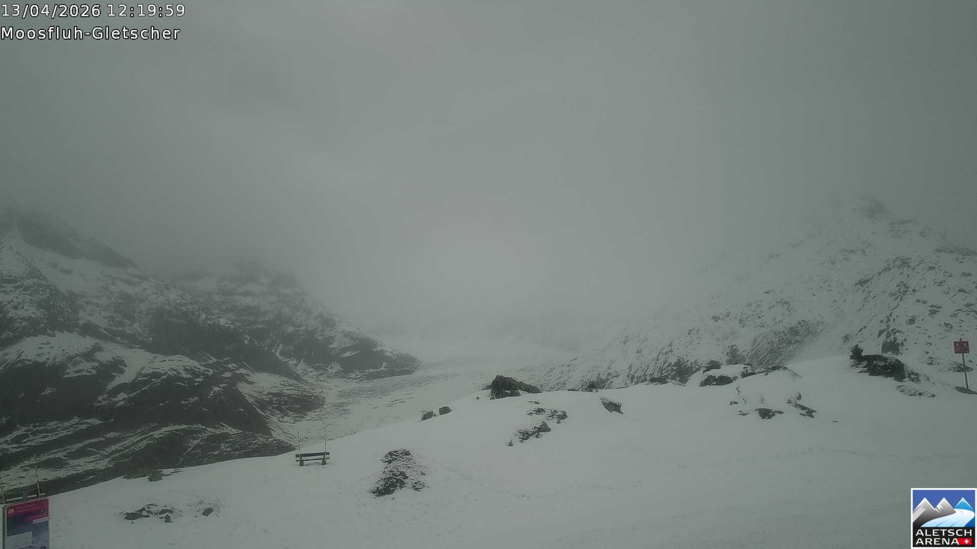 Archiviertes Webcam Bild: Aletsch Arena: Aletschgletscher - Moosfluh am 13.04.2026 um 12:56 Uhr Aktuell