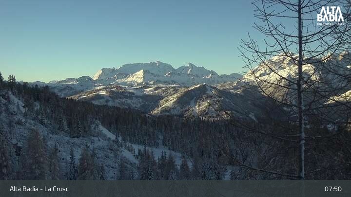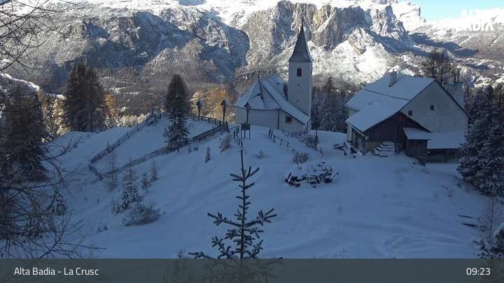 Die Webcam blickt von der Bergstation des La Crusc Sessellifts in Alta Badia auf das Skigebiet.