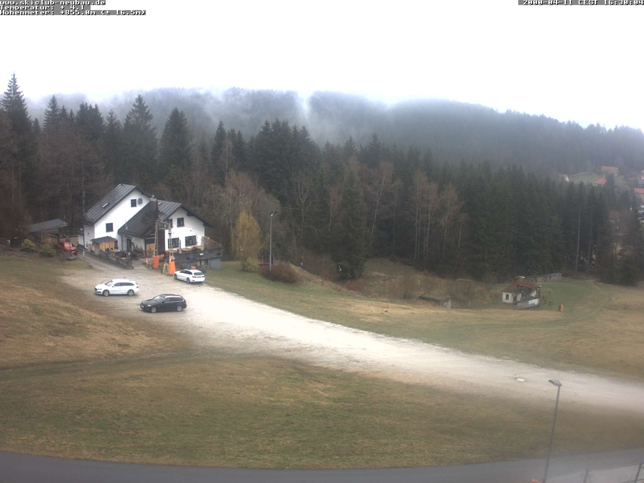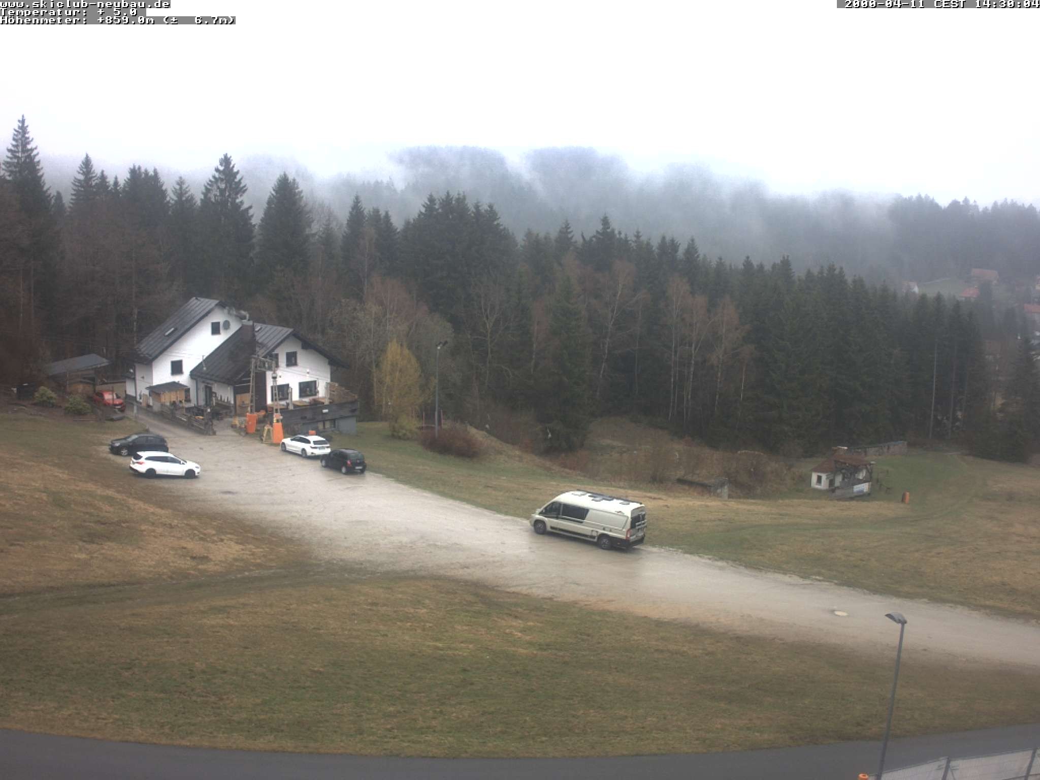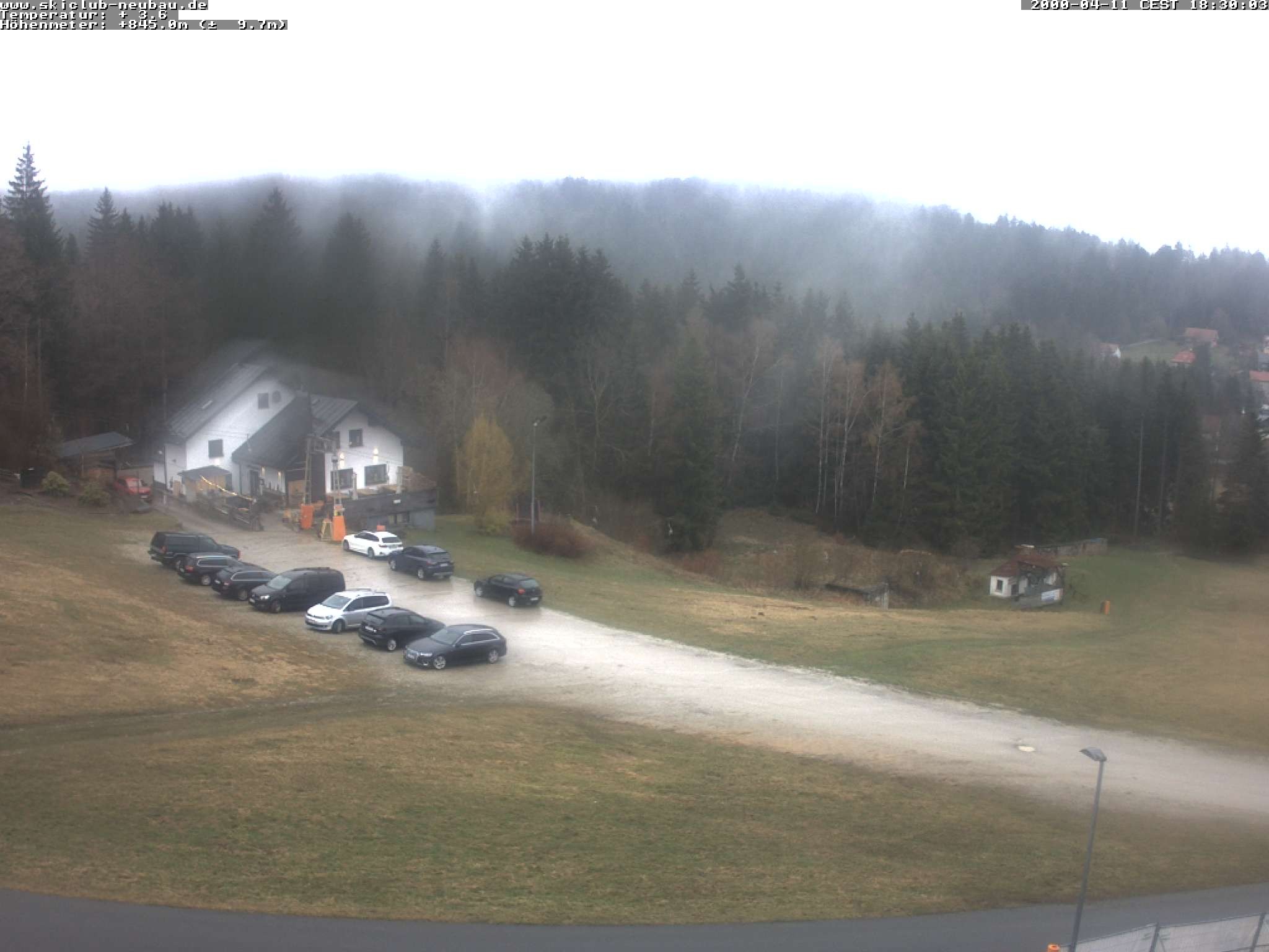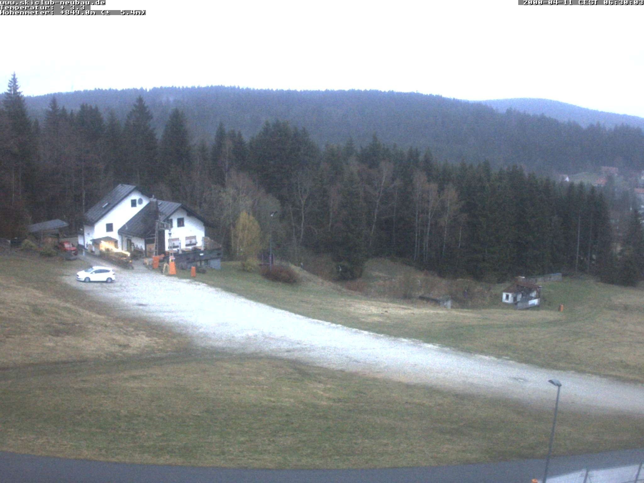 Blick auf das Wirtshaus Bleaml Alm, den Skilift und die Skipiste des Ski Clubs Neubau.
