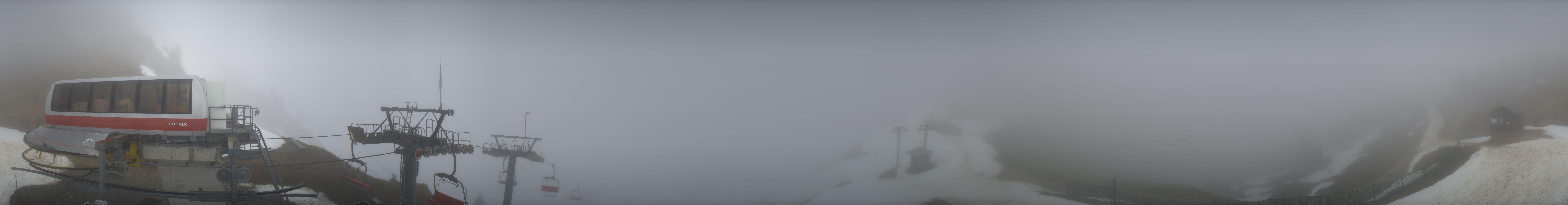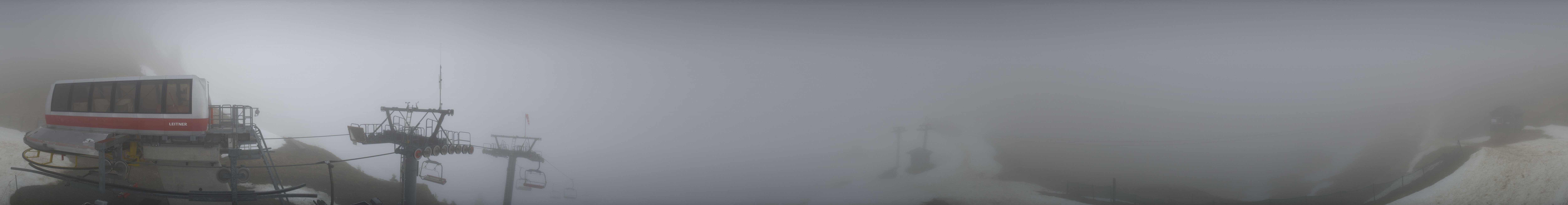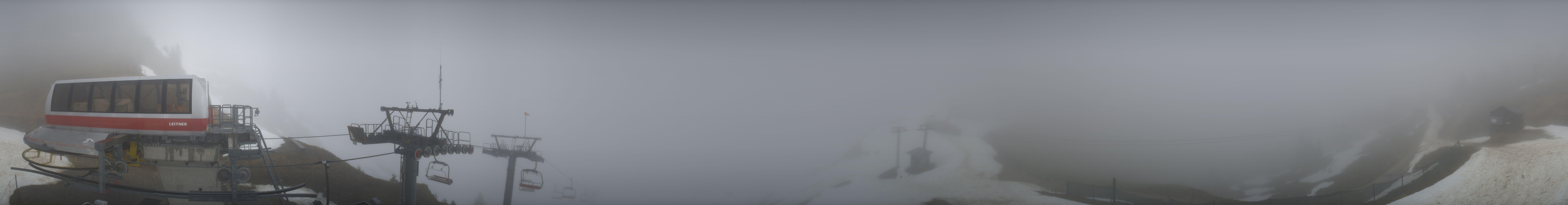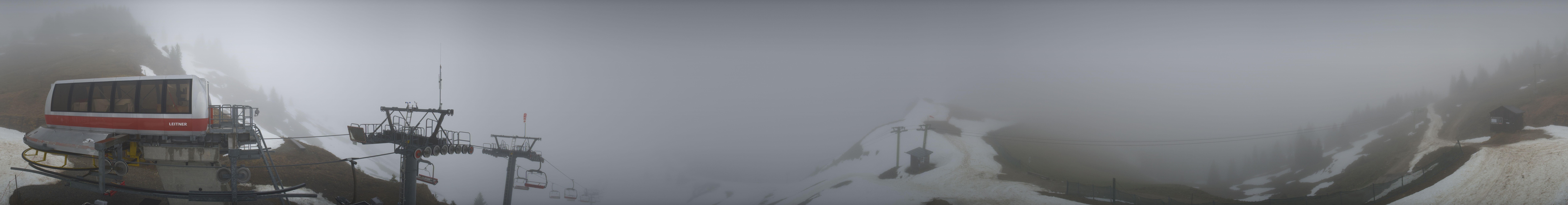 Panoramaaussicht im Skigebiet der Breitenbergbahnen Pfronten. Die Webcam ist an der Bergstation der Hochalpbahn positioniert. Im Winter befindet sich hier ein beliebtes Skigebiet, im Sommer ein Wandergebiet.