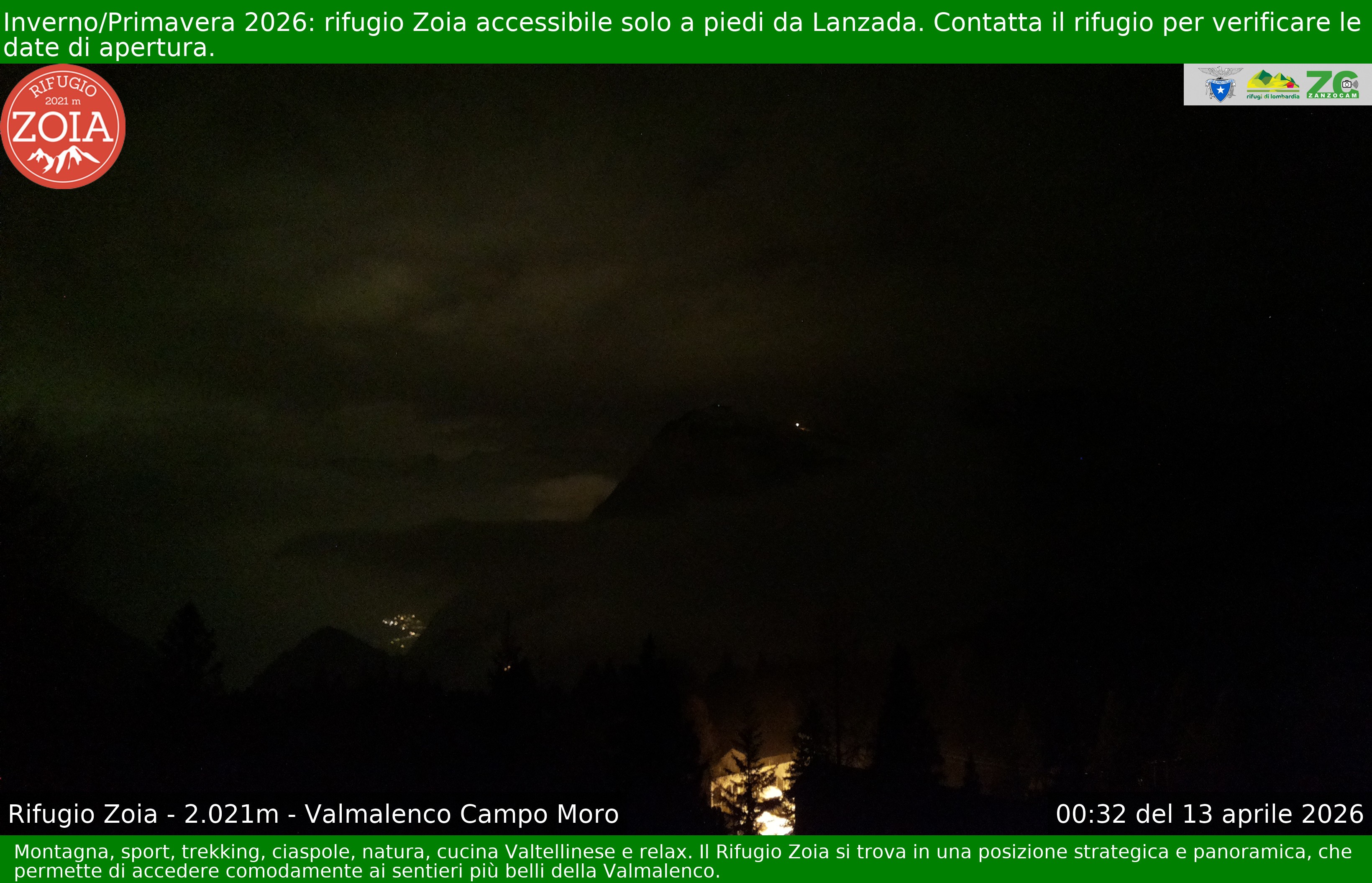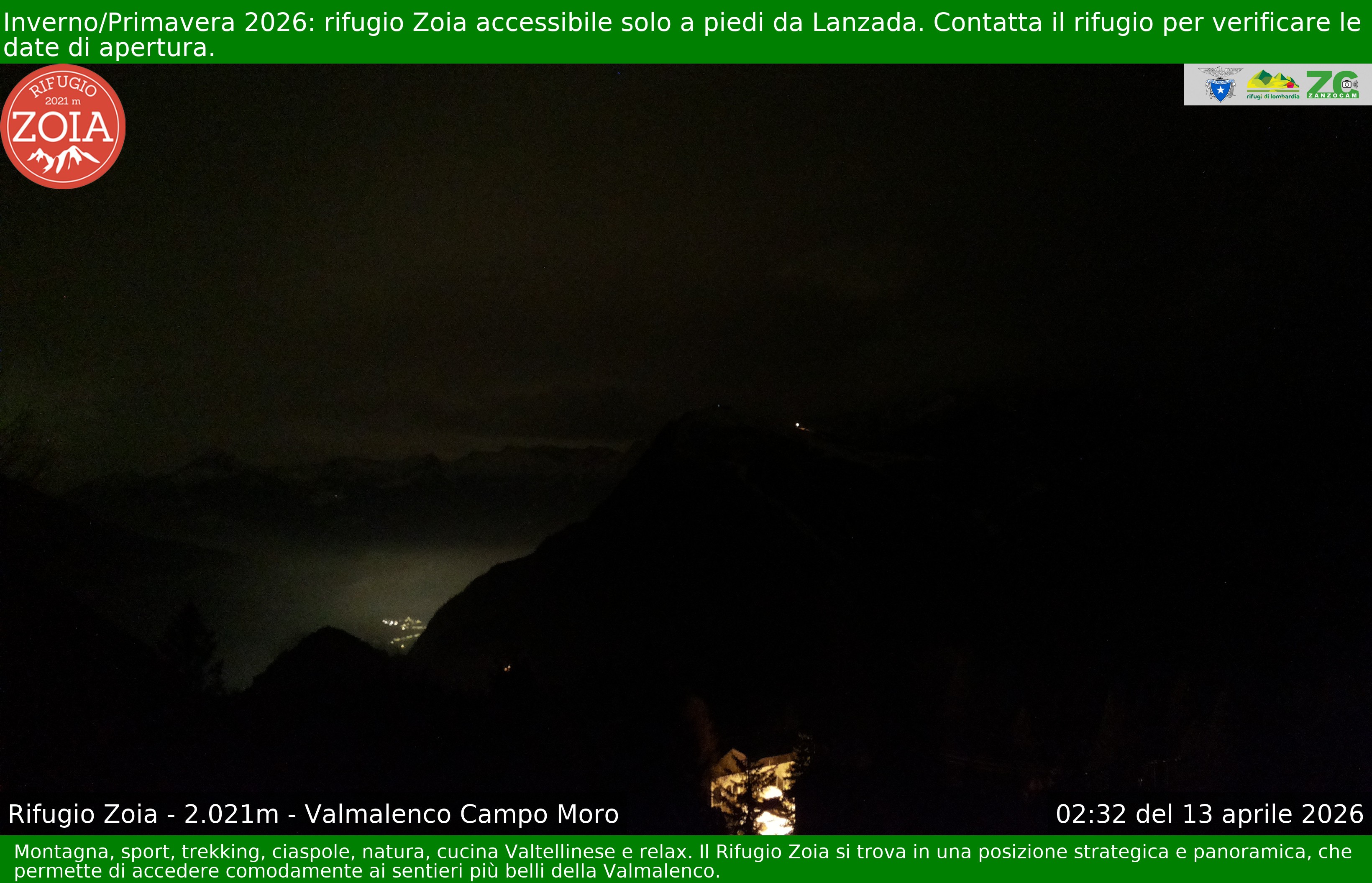 Archiviertes Webcam Bild: Valmalenco: Rifugio Zoia am 13.04.2026 um 02:20 Uhr 02:00