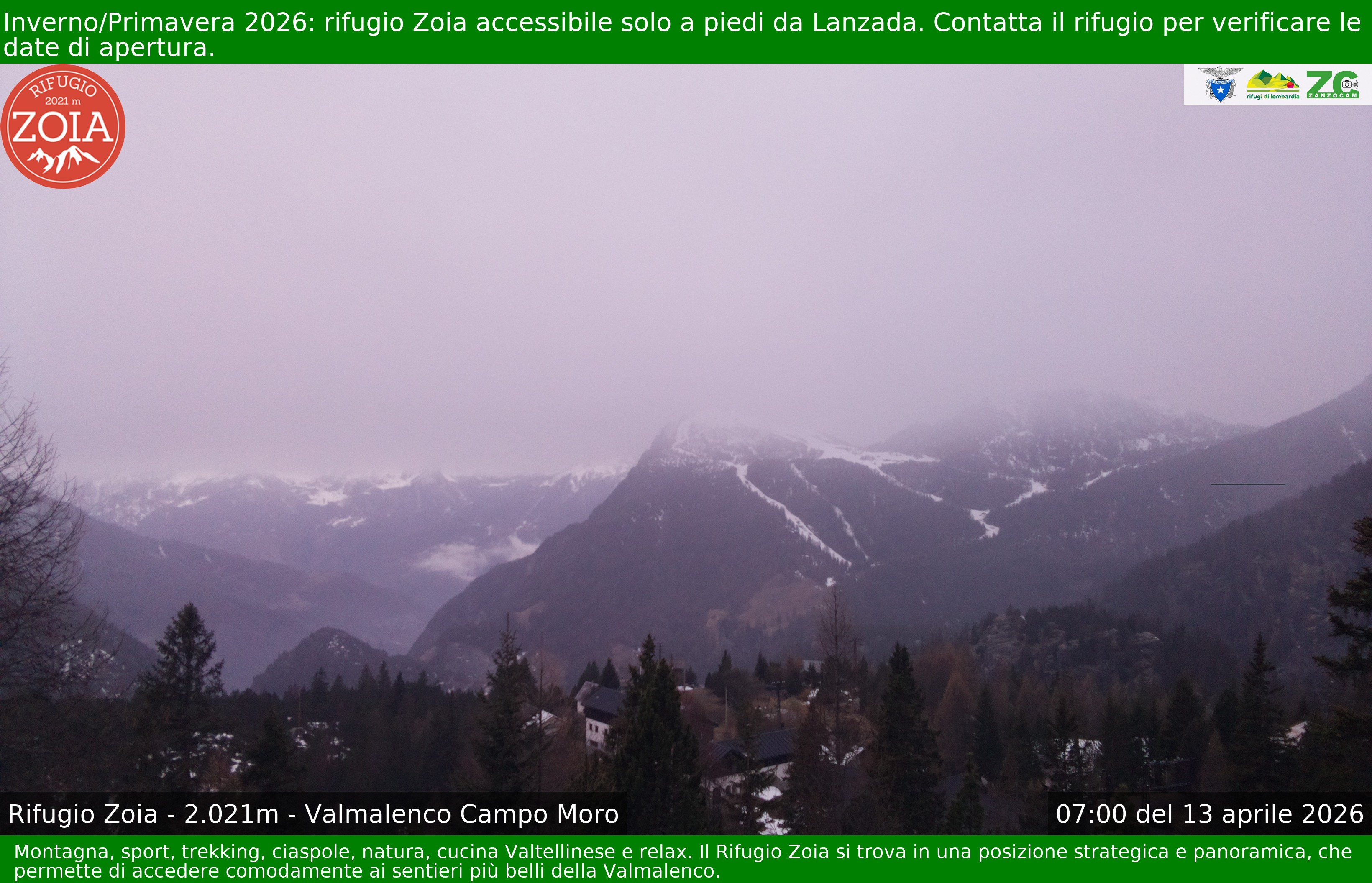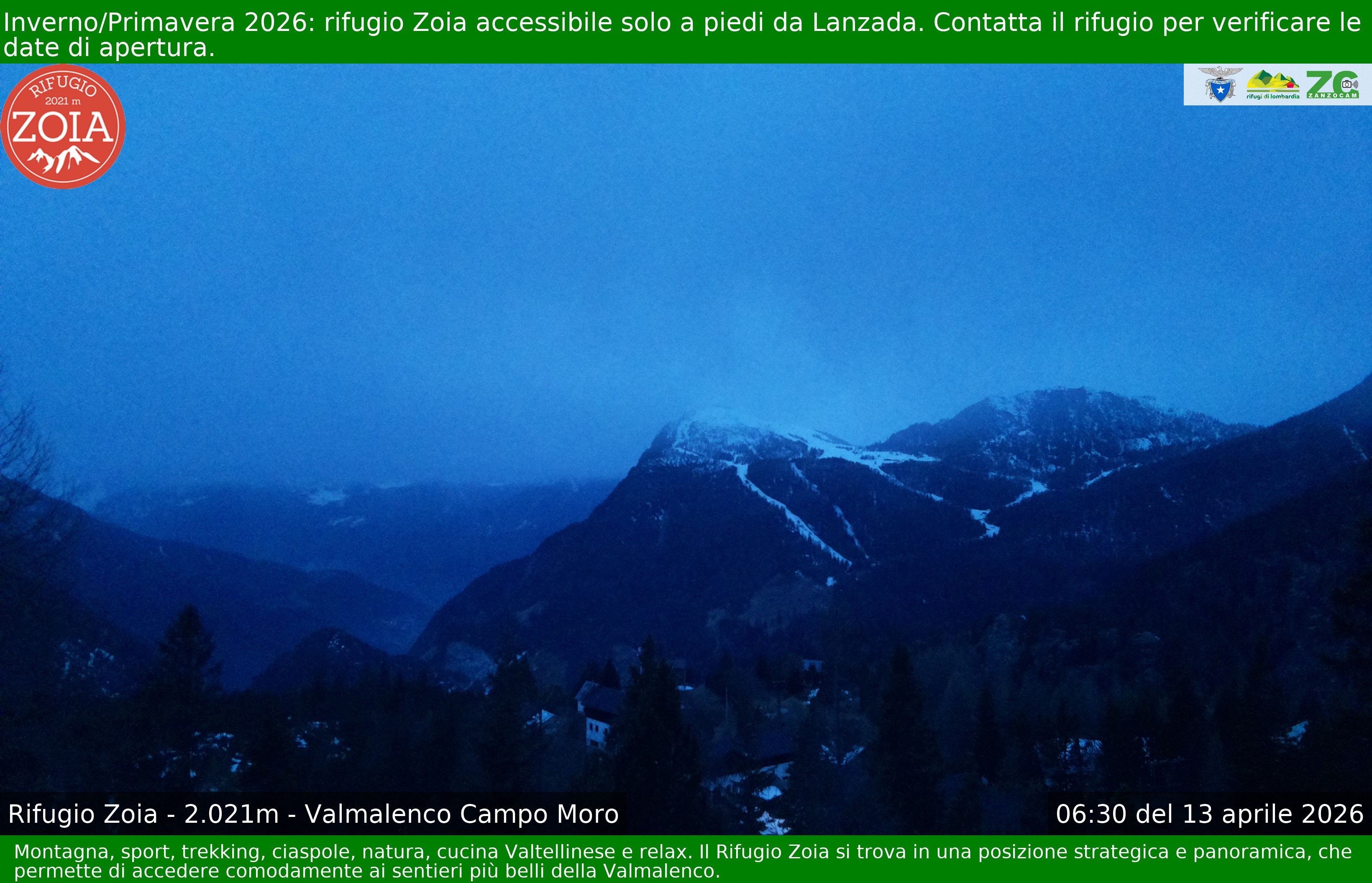 Archiviertes Webcam Bild: Valmalenco: Rifugio Zoia am 13.04.2026 um 07:20 Uhr 07:00