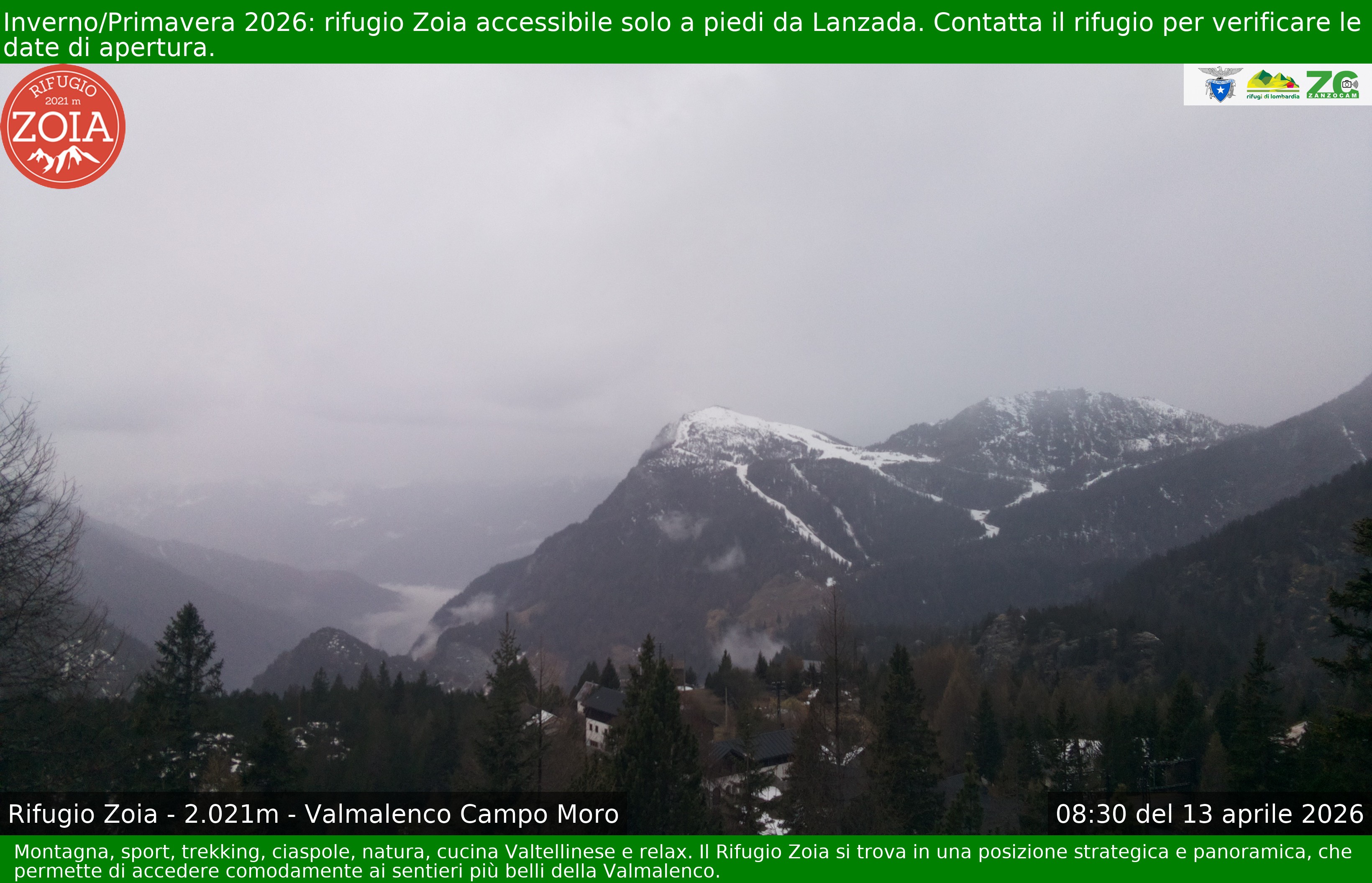 Archiviertes Webcam Bild: Valmalenco: Rifugio Zoia am 13.04.2026 um 08:20 Uhr Aktuell