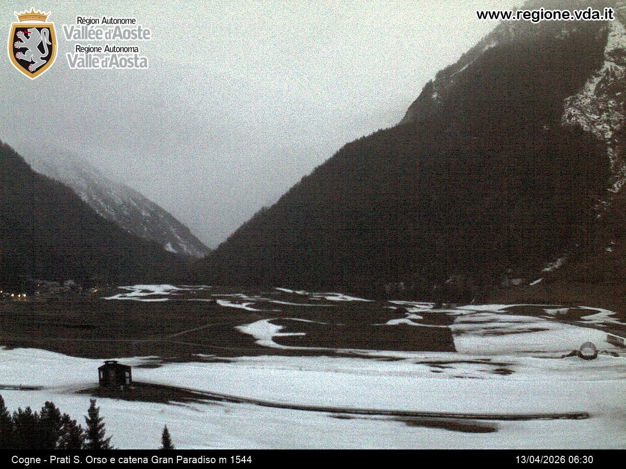 Archiviertes Webcam Bild: Cogne Gran Paradiso Talblick am 13.04.2026 um 04:09 Uhr 04:00
