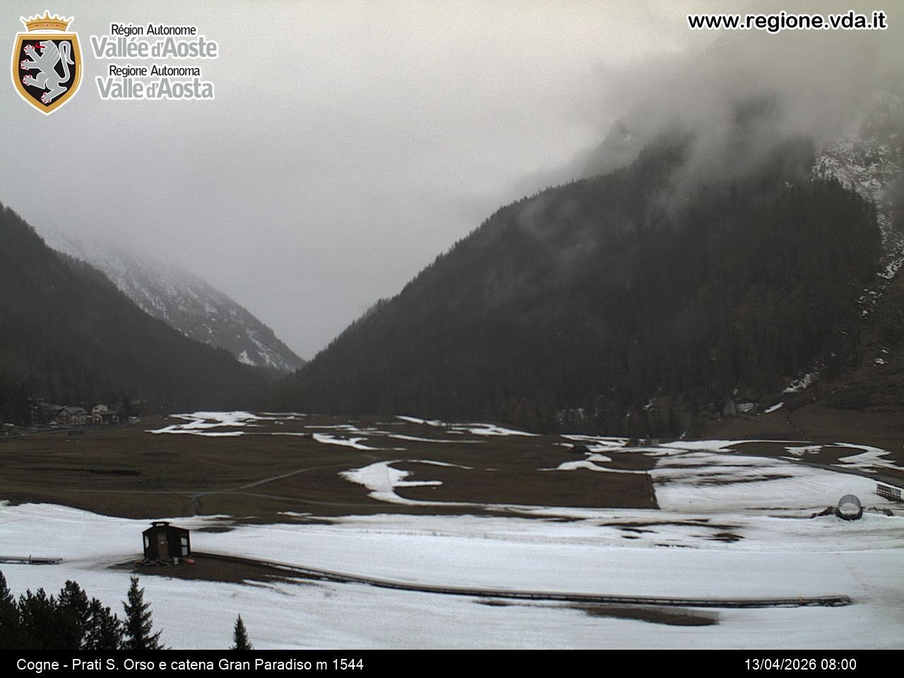 Archiviertes Webcam Bild: Cogne Gran Paradiso Talblick am 13.04.2026 um 08:09 Uhr 08:00