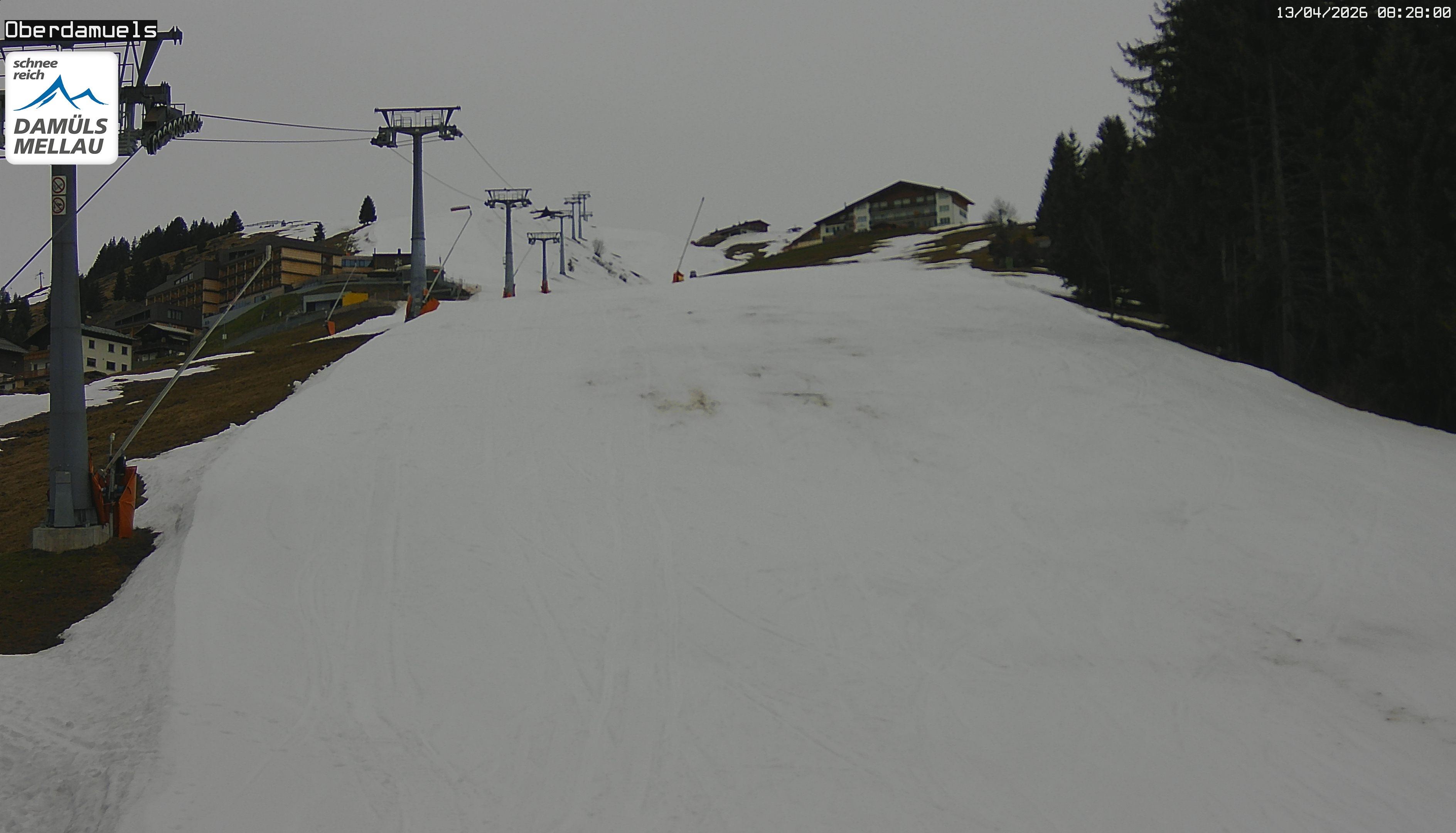 Archiviertes Webcam Bild: Damüls: Webcam Talstation Oberdamüls am 13.04.2026 um 08:59 Uhr 08:00