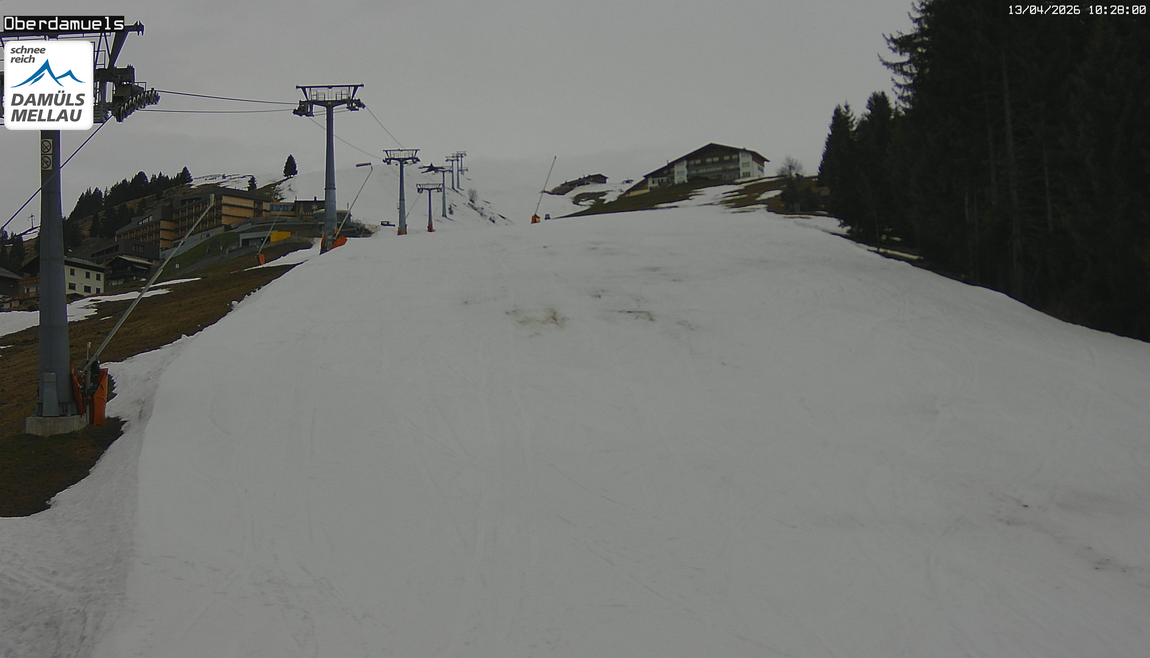 Archiviertes Webcam Bild: Damüls: Webcam Talstation Oberdamüls am 13.04.2026 um 10:59 Uhr Aktuell
