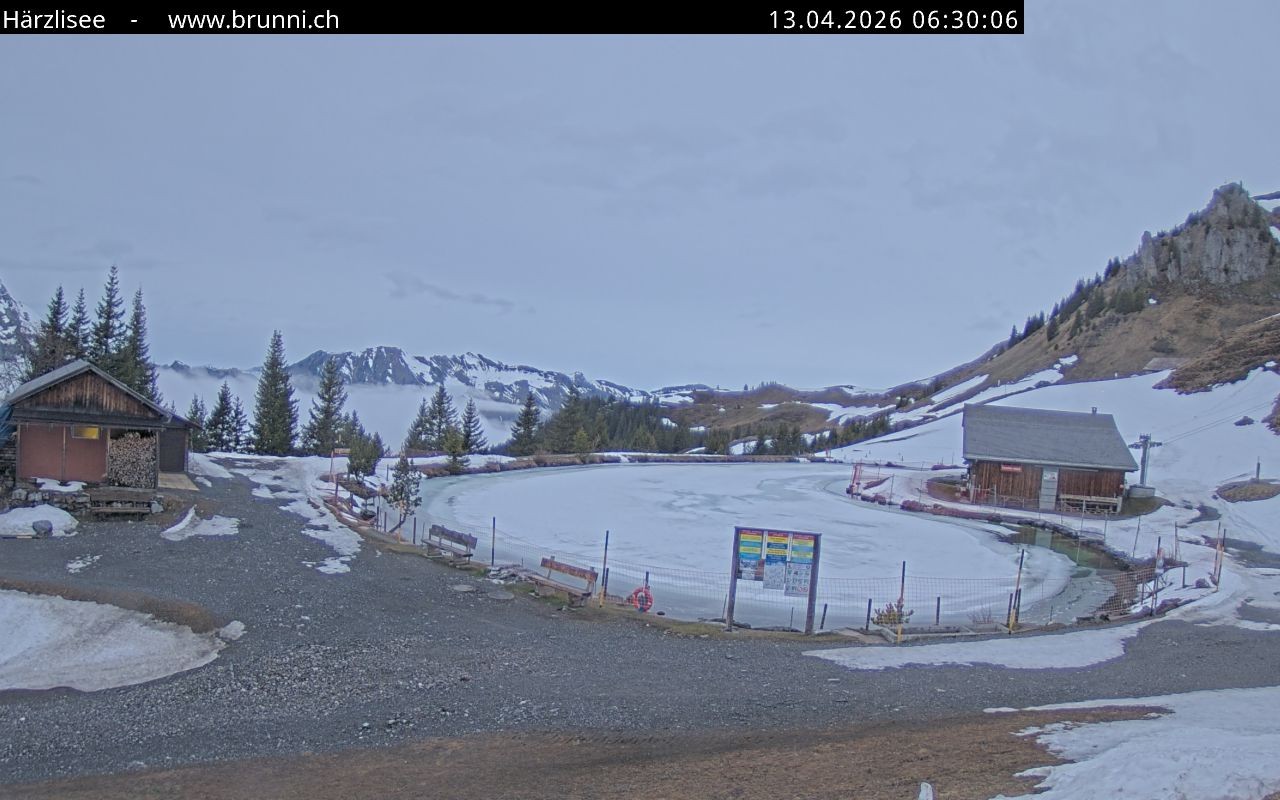 Archiviertes Webcam Bild: Engelberg: Härzlisee und Kräuterhütte am 13.04.2026 um 06:55 Uhr 06:00