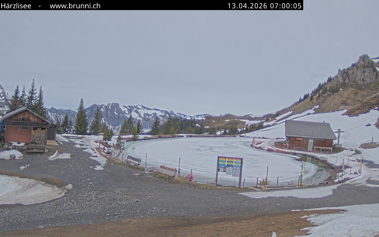 Archiviertes Webcam Bild: Engelberg: Härzlisee und Kräuterhütte am 13.04.2026 um 07:55 Uhr 07:00