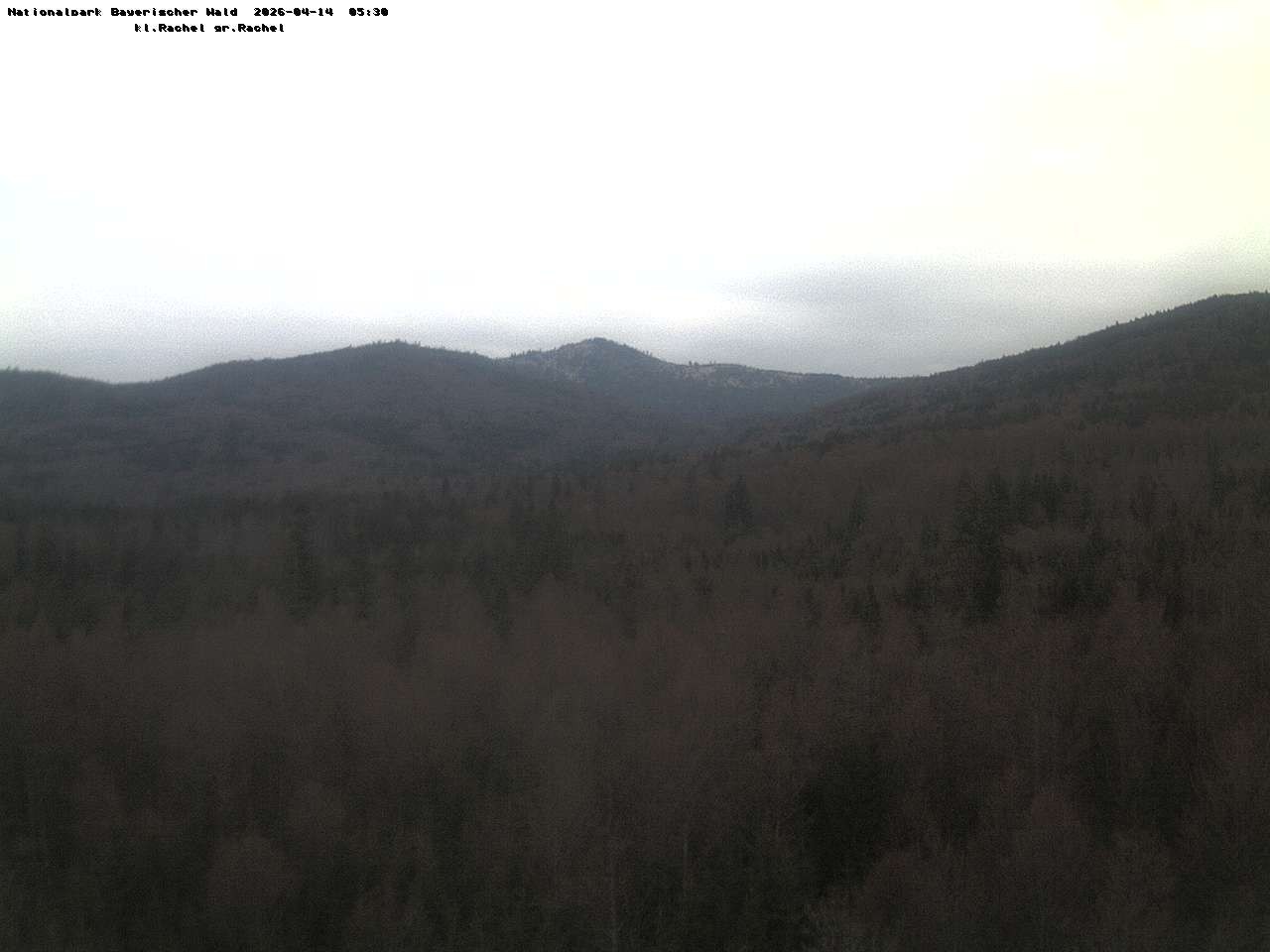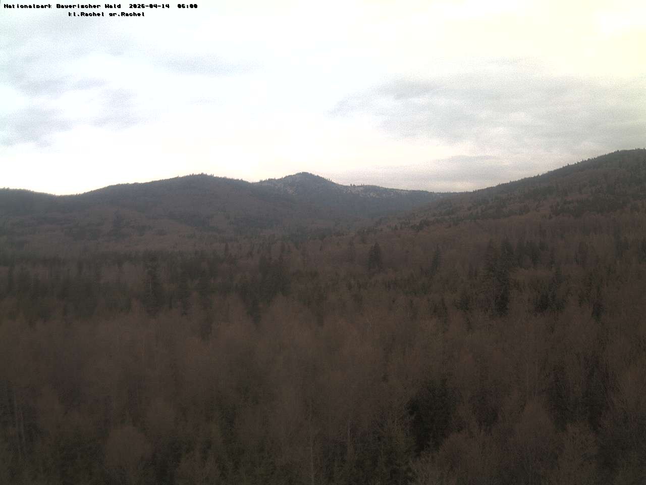 Archived webcam image showing Großer Rachel, Bavarian Forest on 14 Apr 2026 at 06:27 05:00