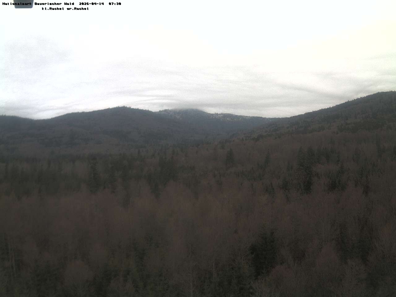 Archived webcam image showing Großer Rachel, Bavarian Forest on 14 Apr 2026 at 07:27 06:00