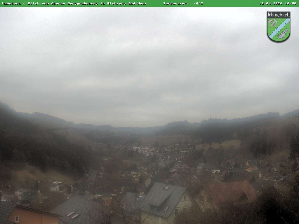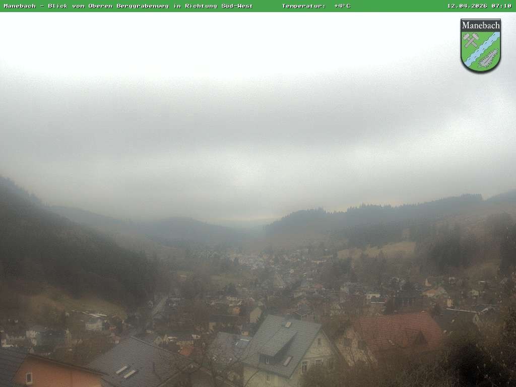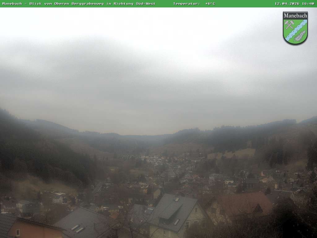 Die Webcam zeigt den Blick auf Manebach, einen Ortsteil der Stadt Ilmenau.
