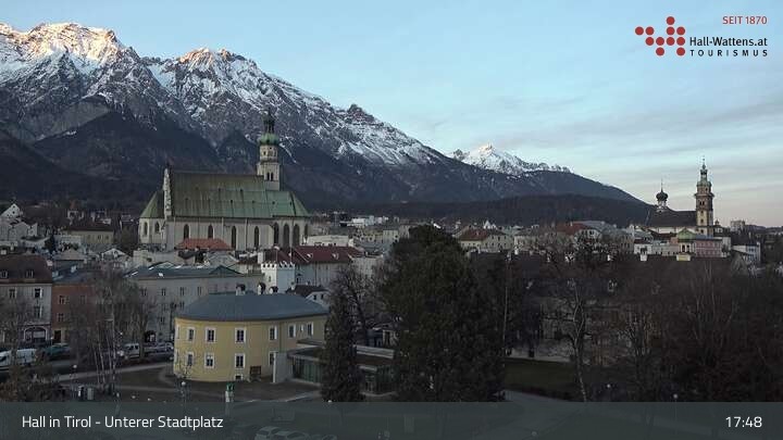 Archiviertes Webcam Bild: Stadtplatz in Hall in Tirol am 26 Feb 2026 um 19:27 Uhr 18:00