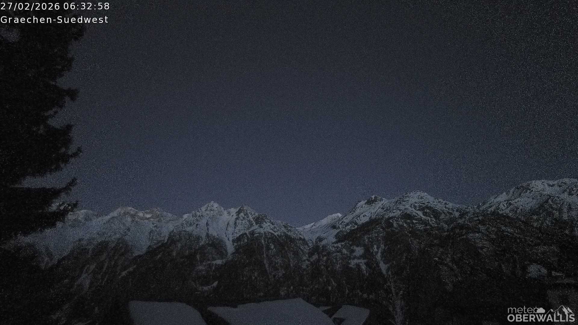 Archived webcam image showing Grächen - Weisshorn on 26 Feb 2026 at 02:42 01:00